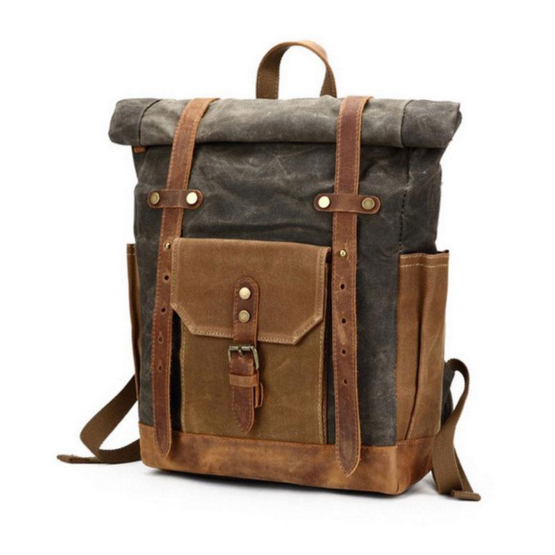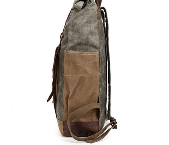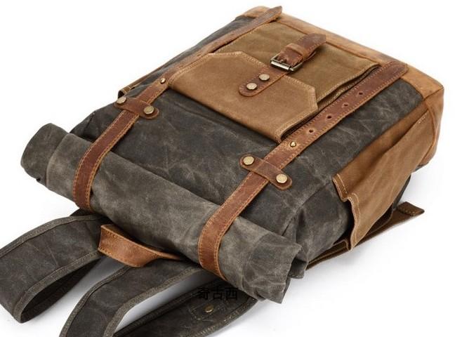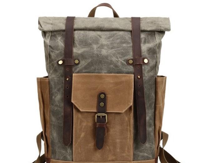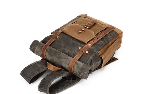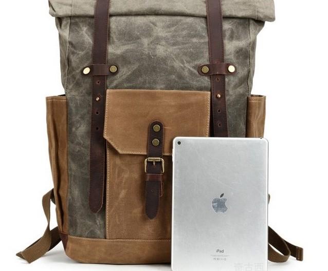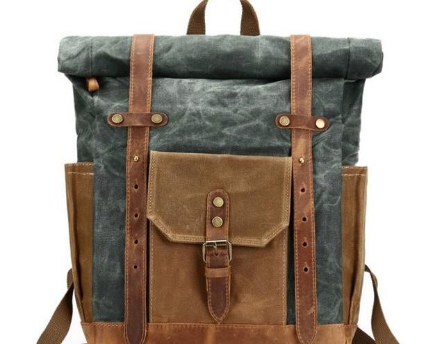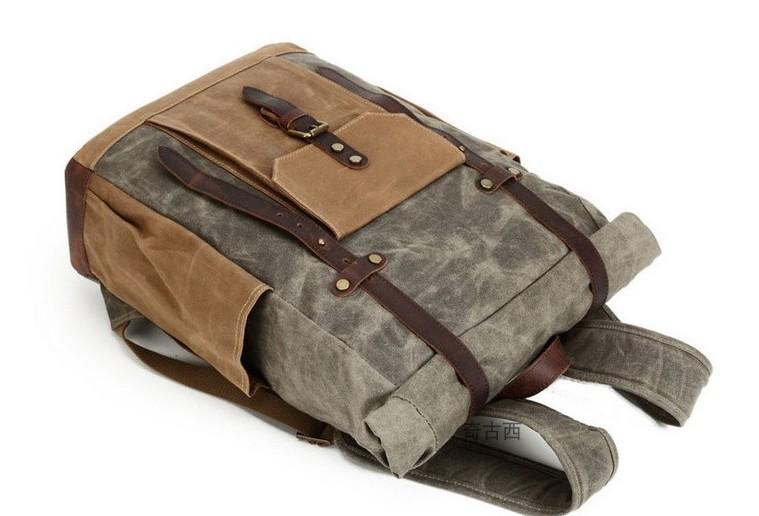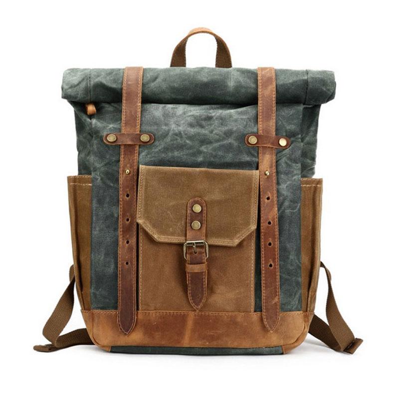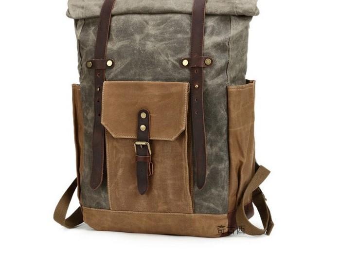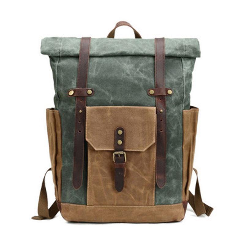 Design: Waxed Canvas Backpack Army Green Travel Waxed Canvas Rucksack for Men Women