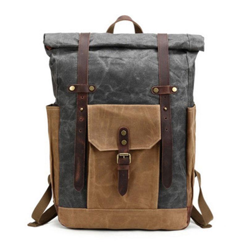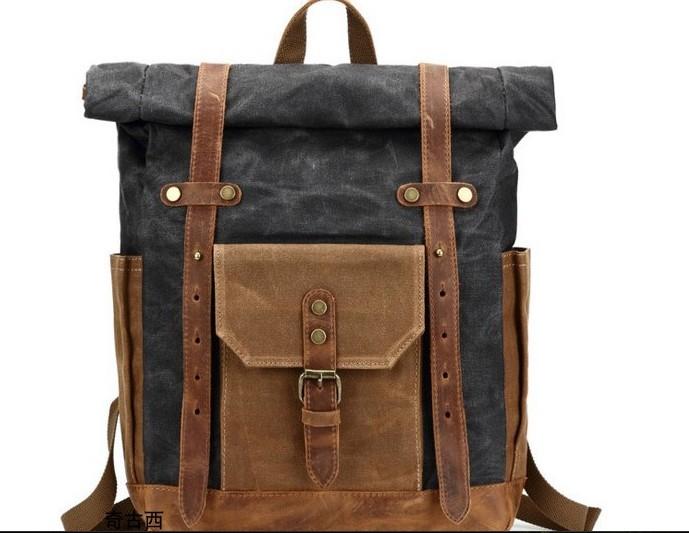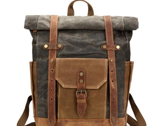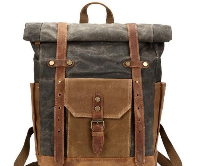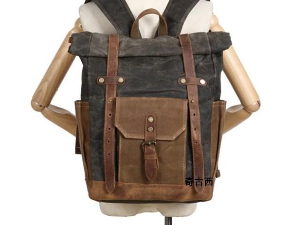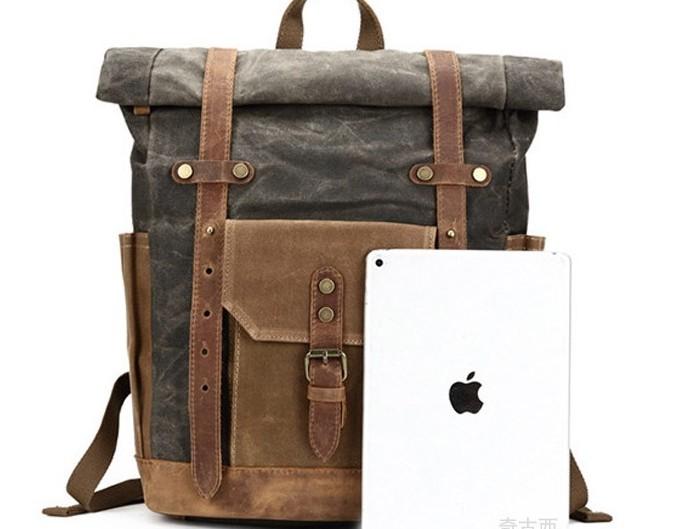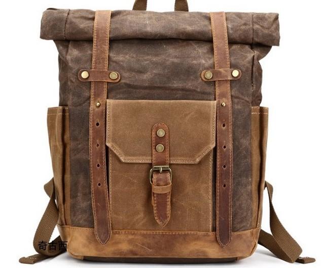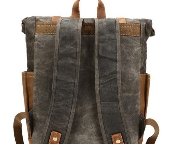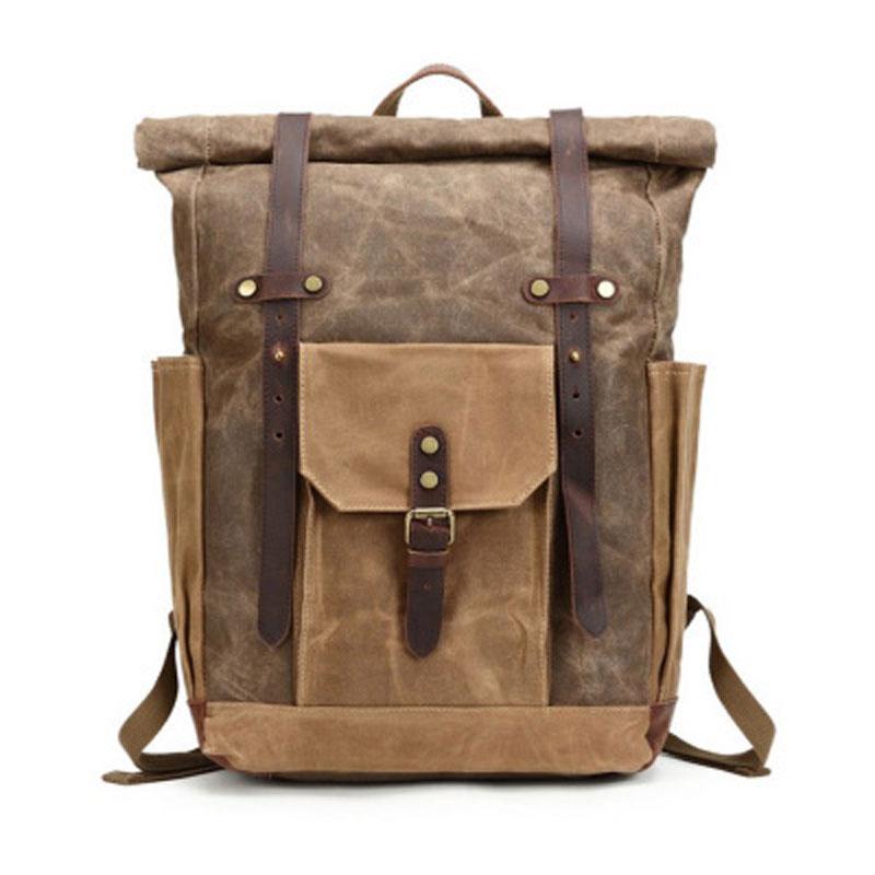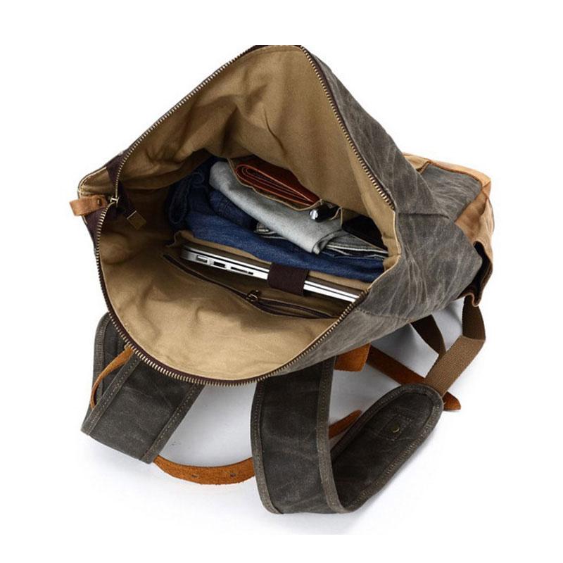 Design: Waxed Canvas Backpack Army Green Travel Waxed Canvas Rucksack for Men Women