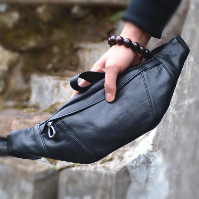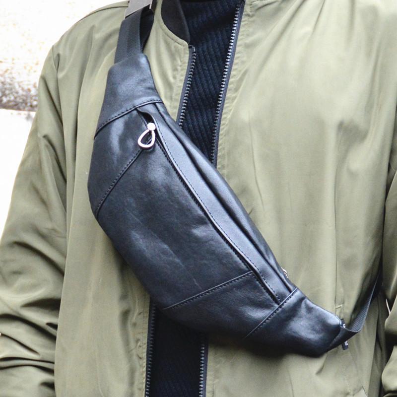 Style: Small Black Leather Fanny Pack Men's Leather Chest Bag Black Leather Hip Bag Small Waist Bags For Men