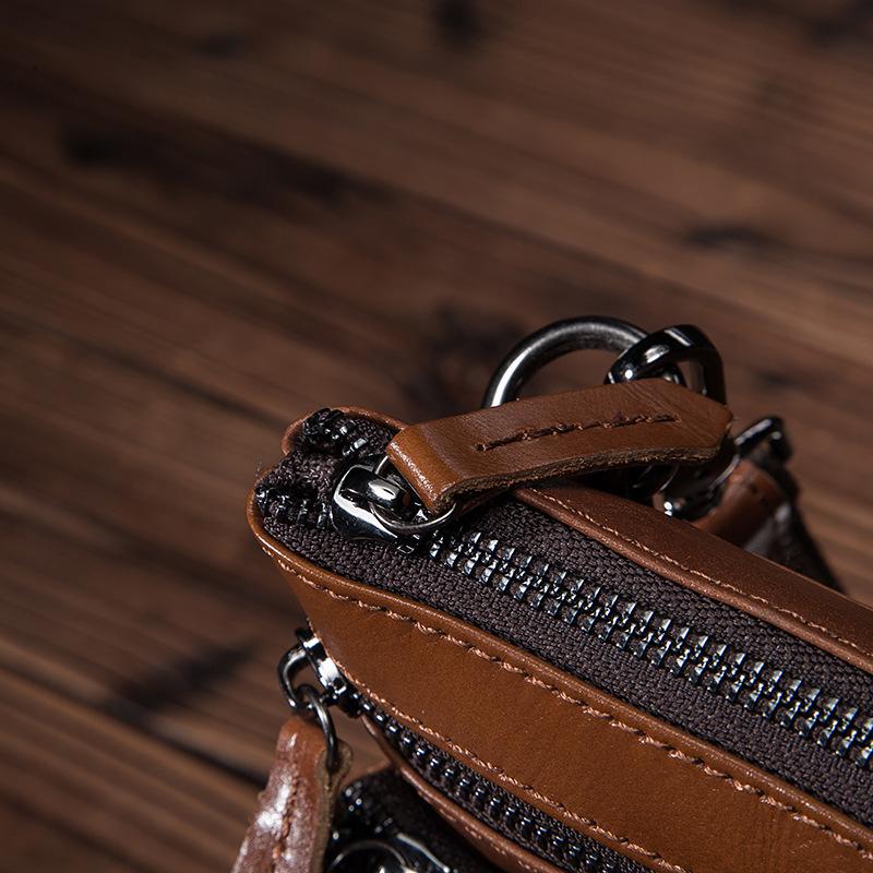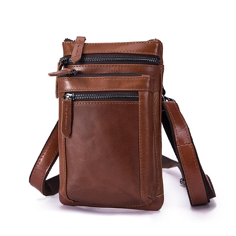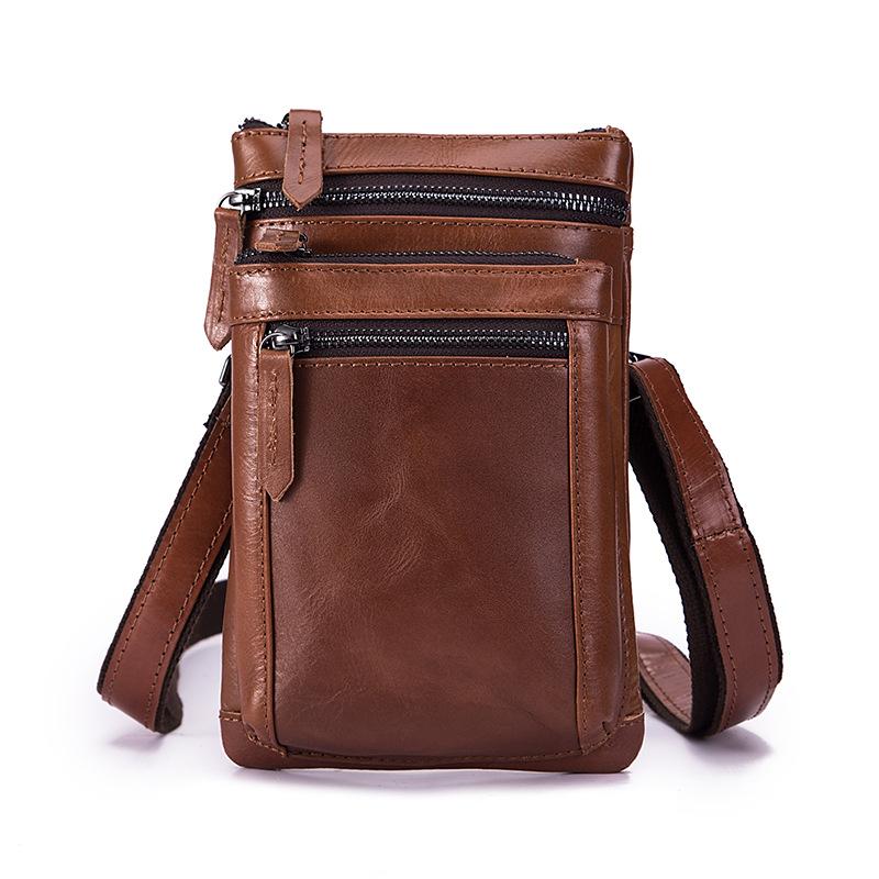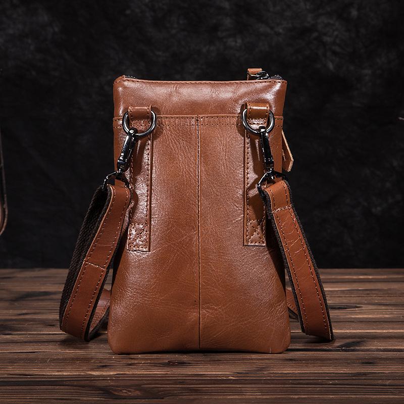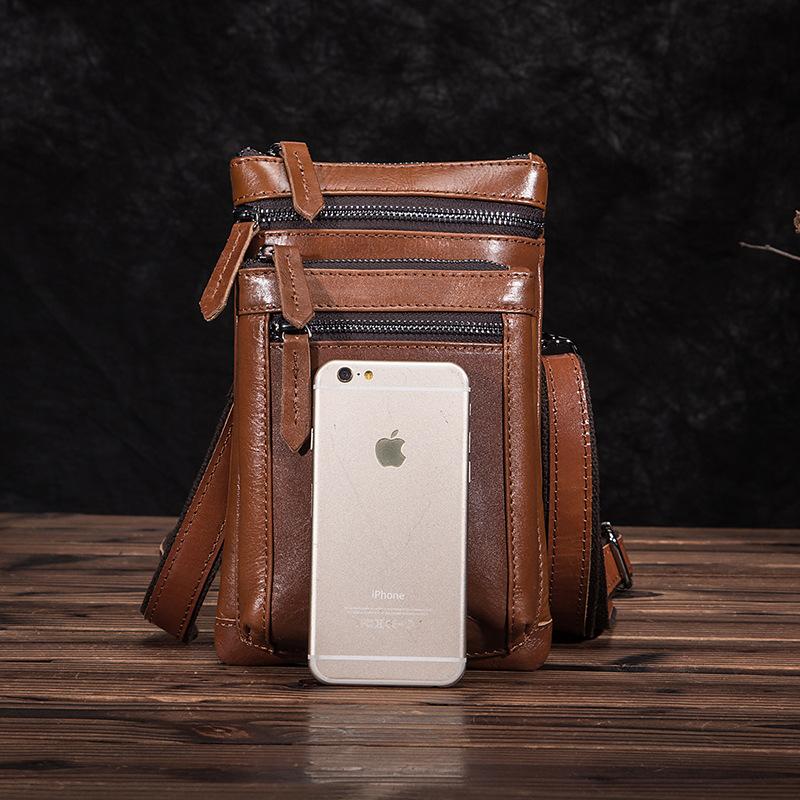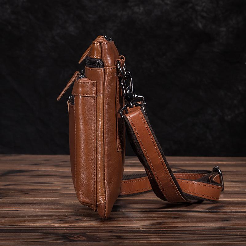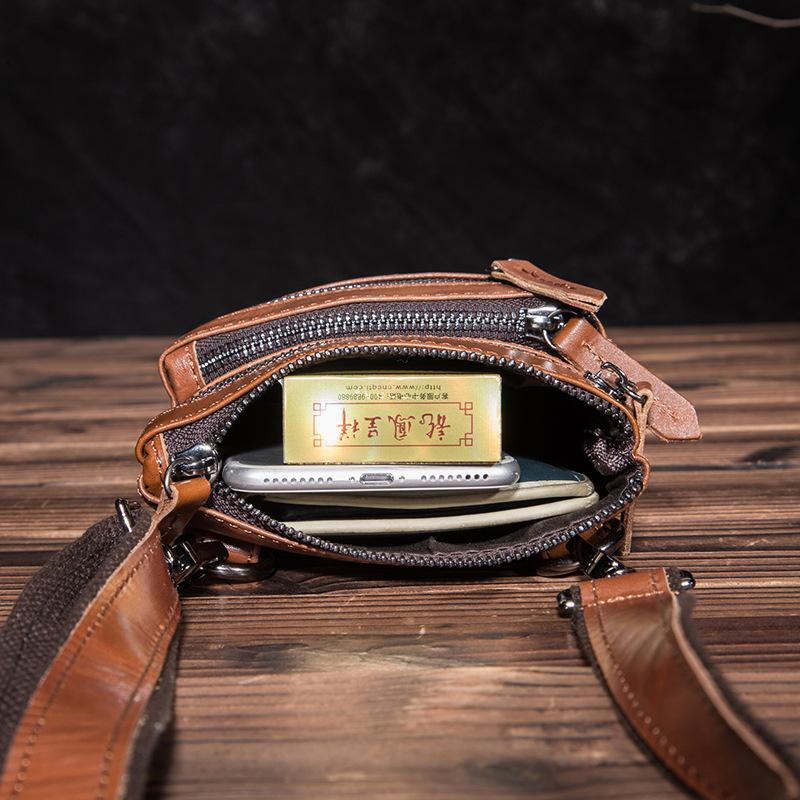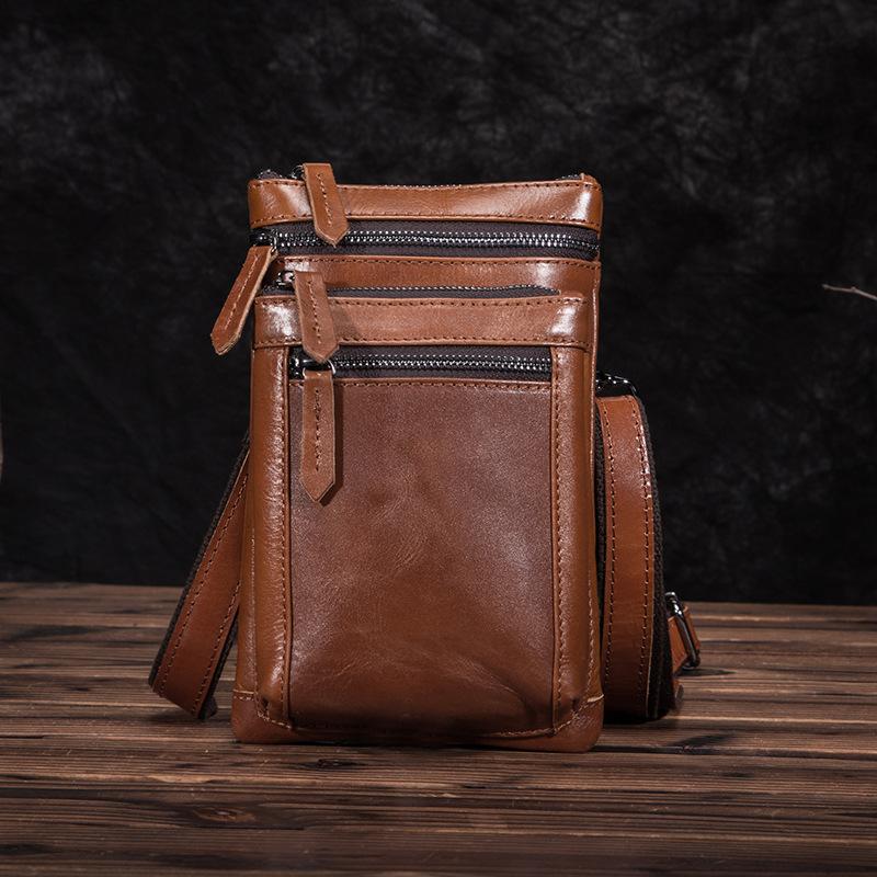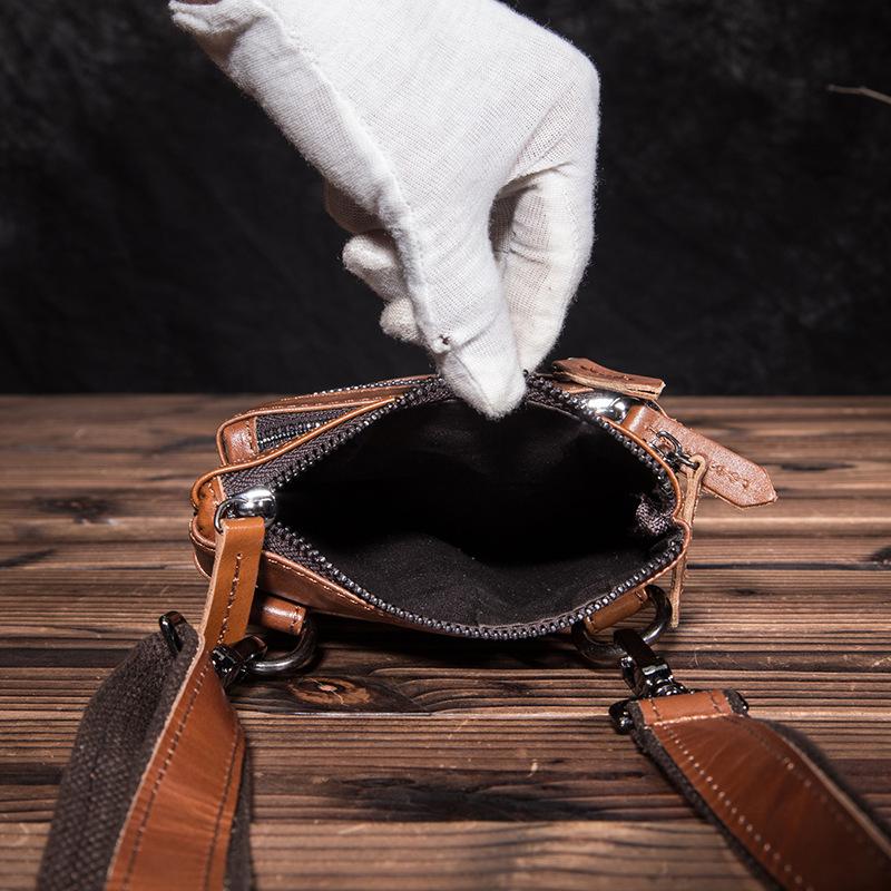 Style: Badass Red Brown Leather Men's Small Shoulder Bag Side Bag Waist Bag Messenger Bag For Men