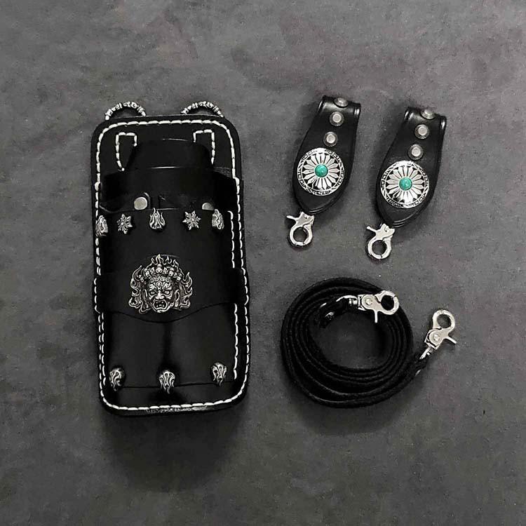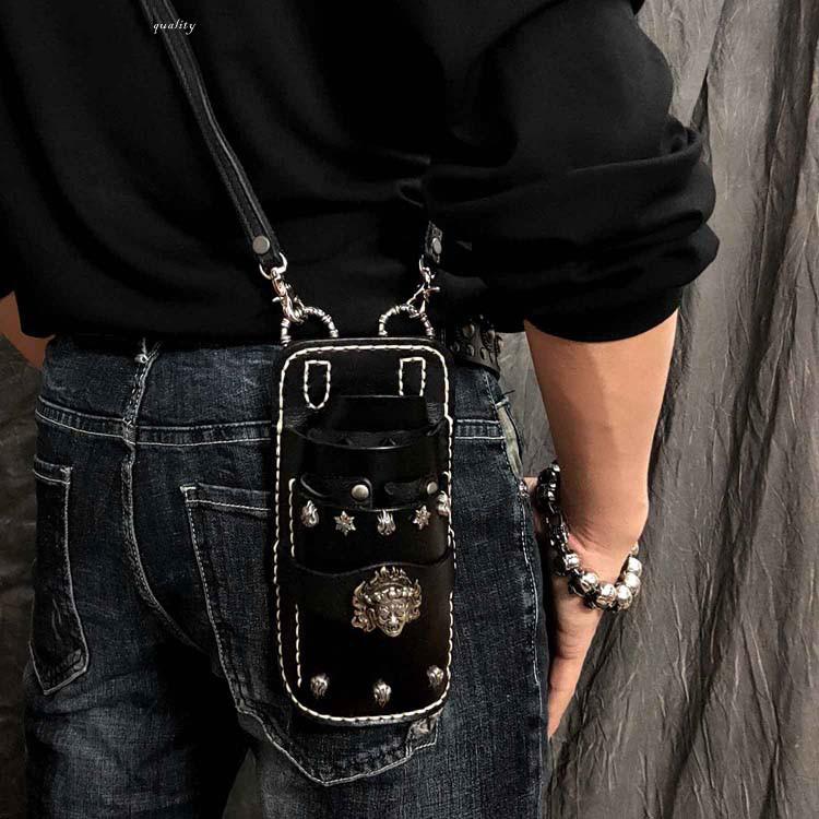 Design: Black Badass Mens Leather Waist Bag Side Bag Brown Hairstylist Tool Barber Pouch Coffee Scissor Case for Men