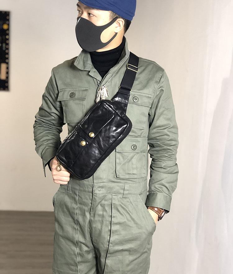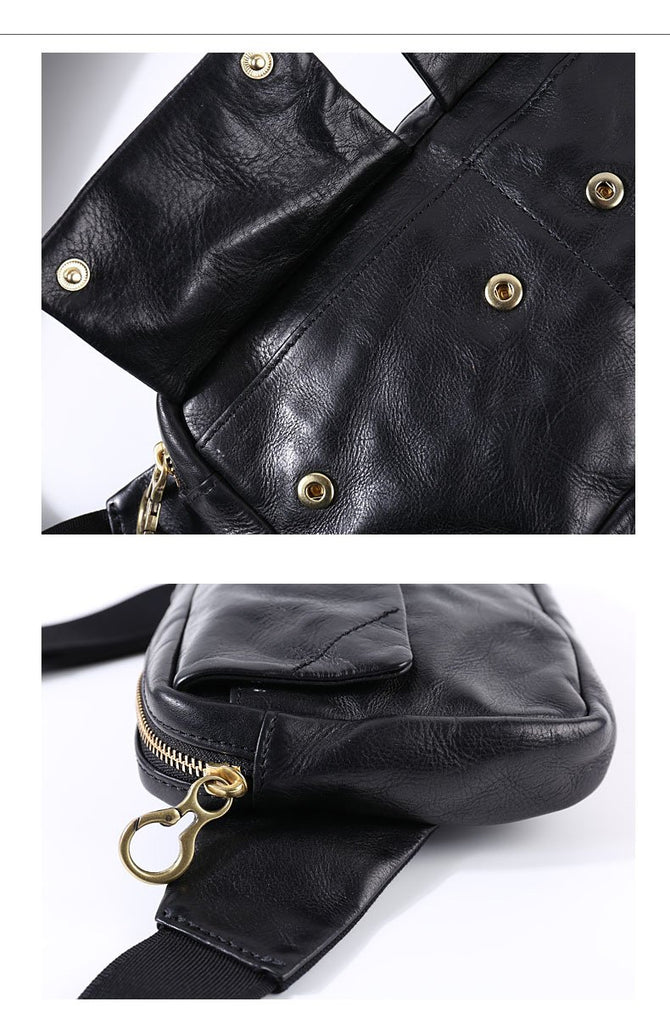 Black Cool Leather Men Fanny Pack Waist Bag Hip Pack Chest Bag Coffee Belt Bag Bumbag for Men