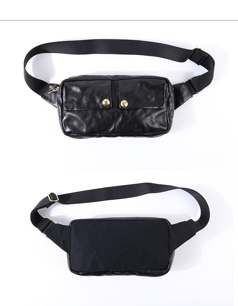 Design: Black Handmade Leather Men Fanny Pack 8 inches Waist Bag Hip Pack Coffee Belt Bag Bumbag for Men