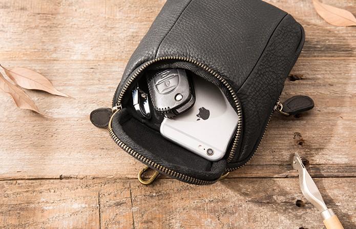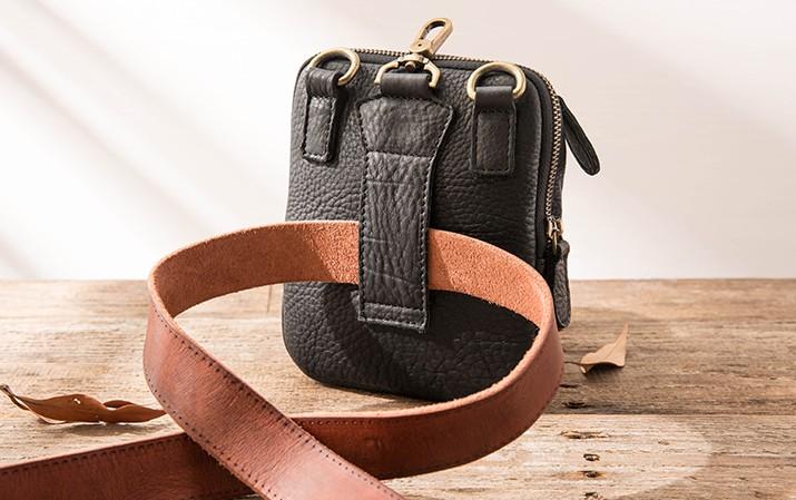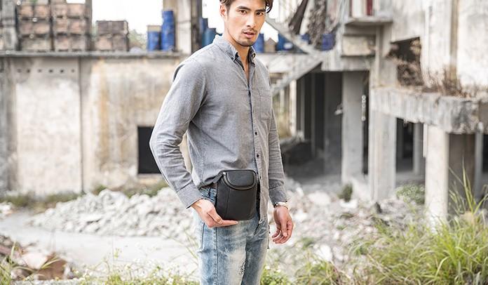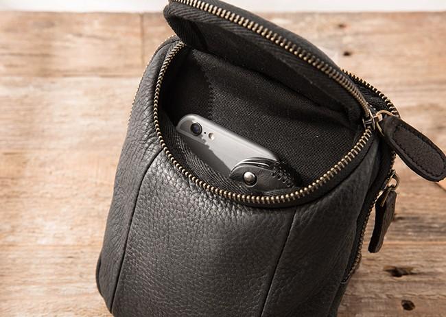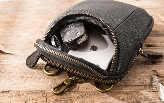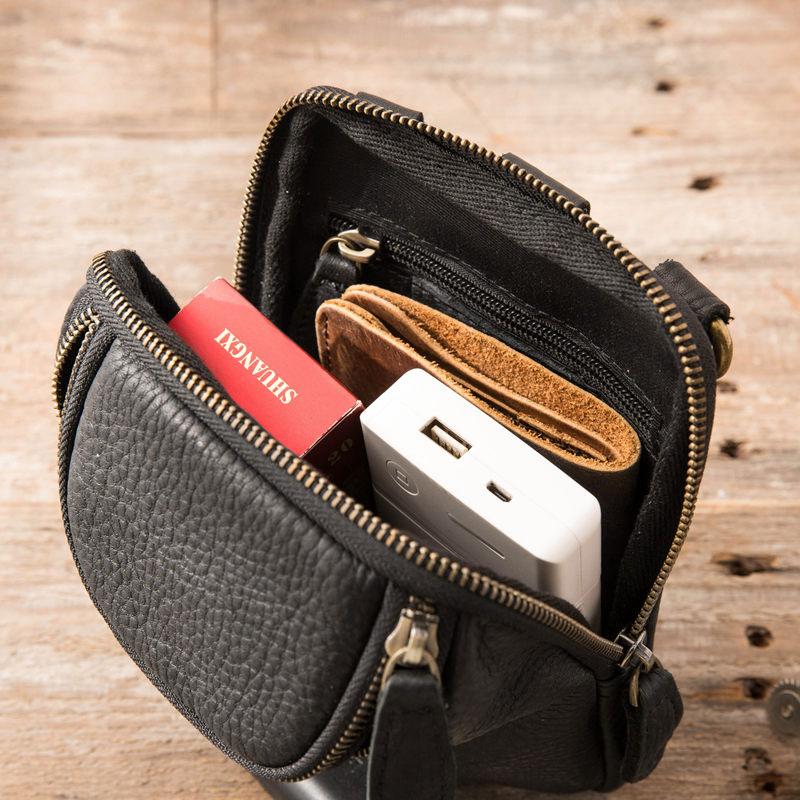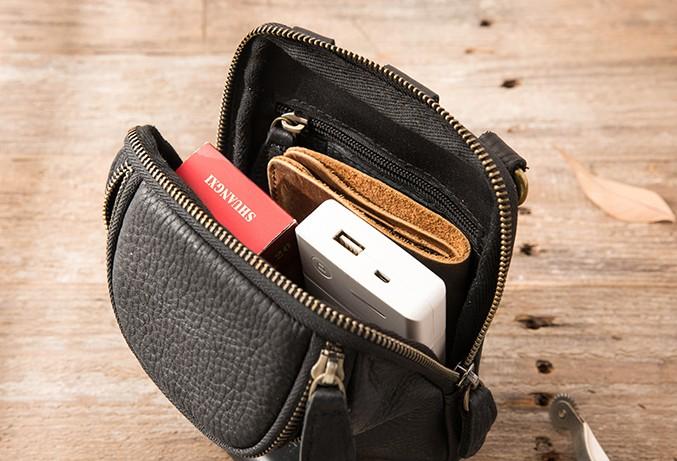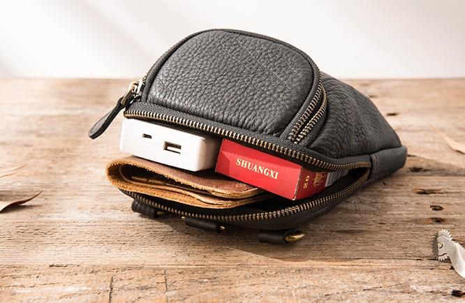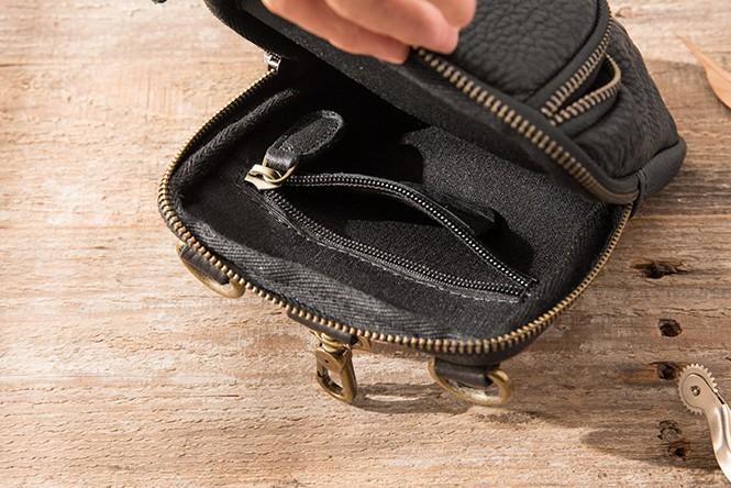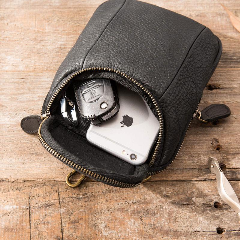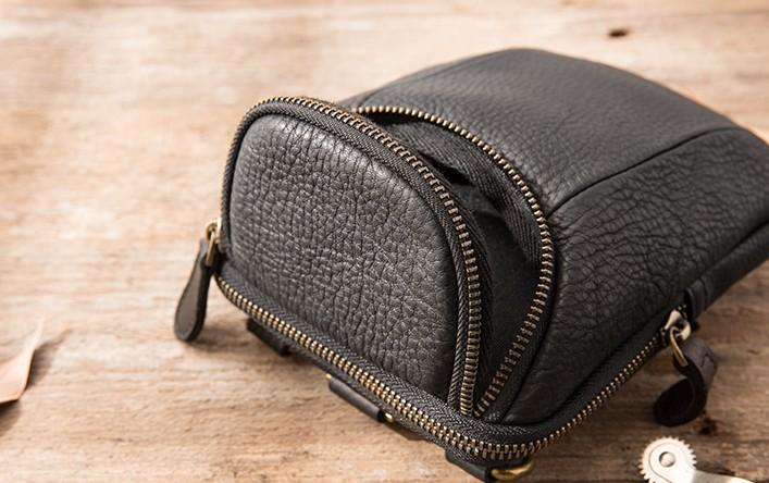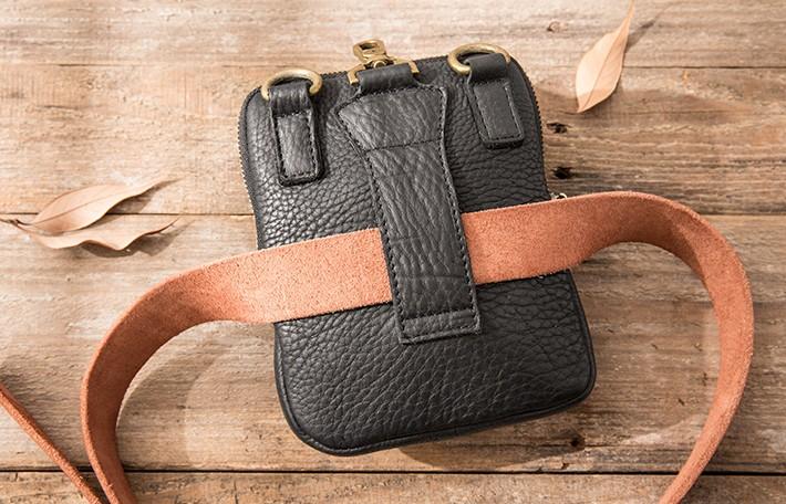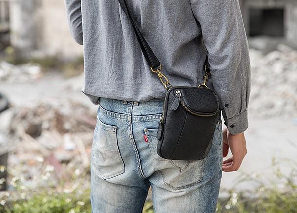 Design: Black Leather Belt Pouch Mens Waist Bag Shoulder Bag for Men