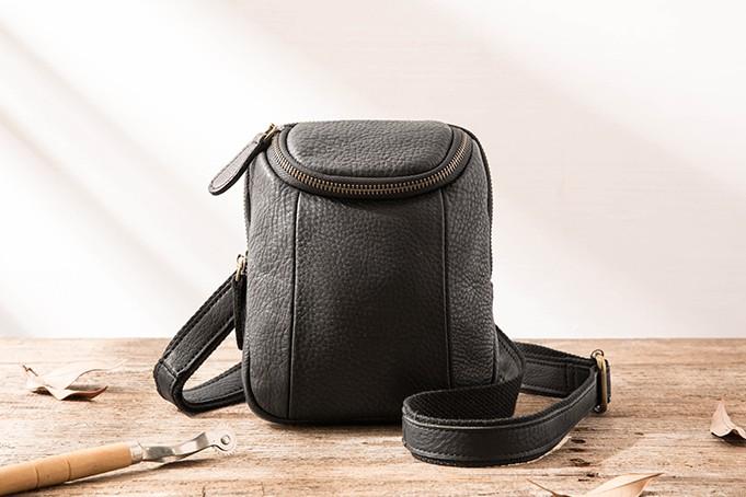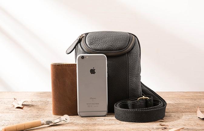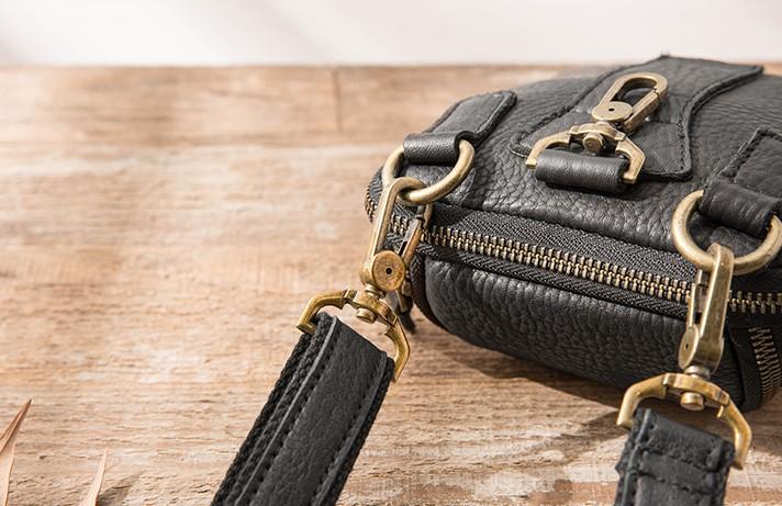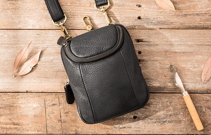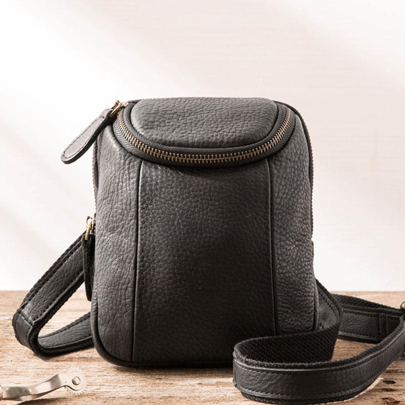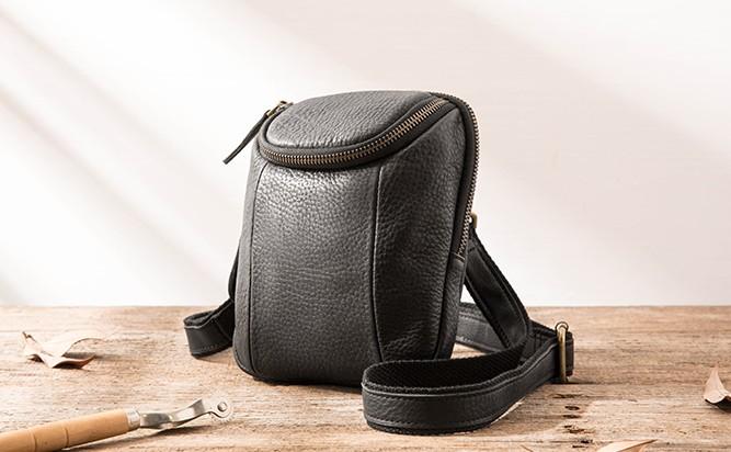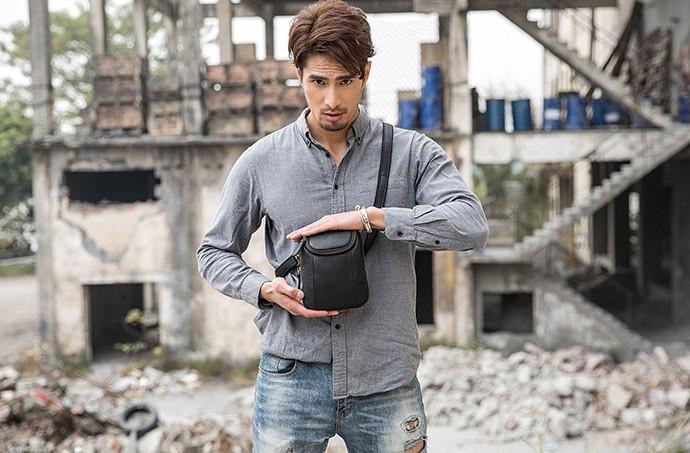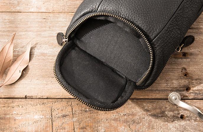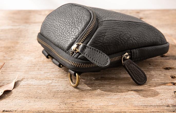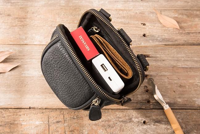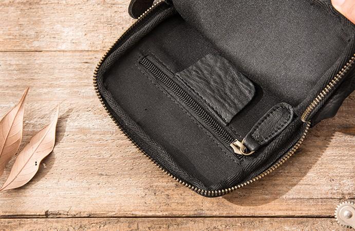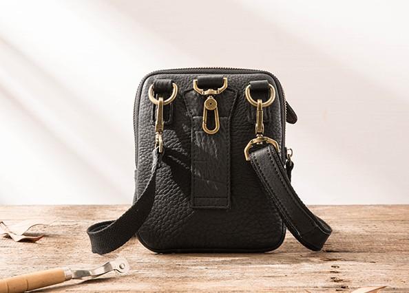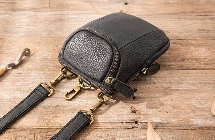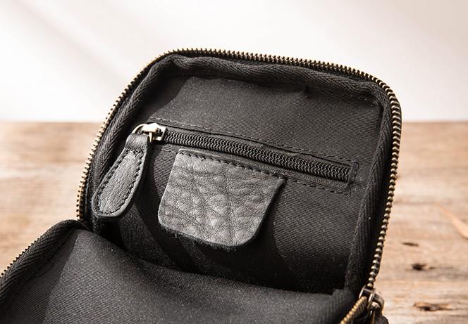 Design: Black Leather Belt Pouch Mens Waist Bag Shoulder Bag for Men