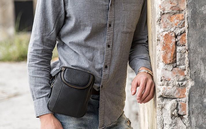Style: Black Leather Belt Pouch Mens Waist Bag Shoulder Bag for Men
