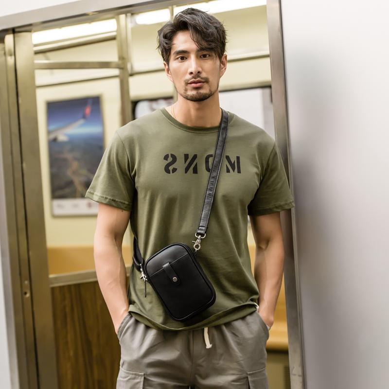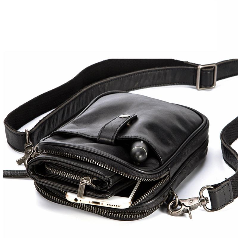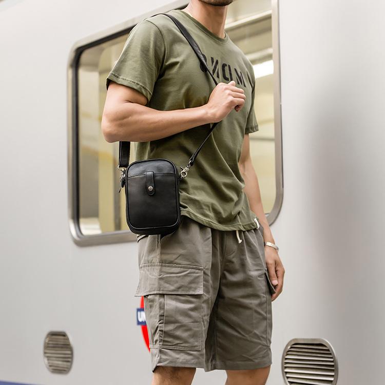 Design: Black Leather Mens 8 inches Small Phone Bag Sling Shoulder Bag Messenger Bag for men