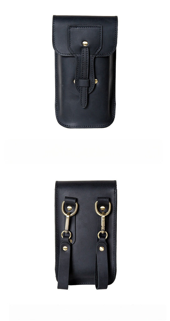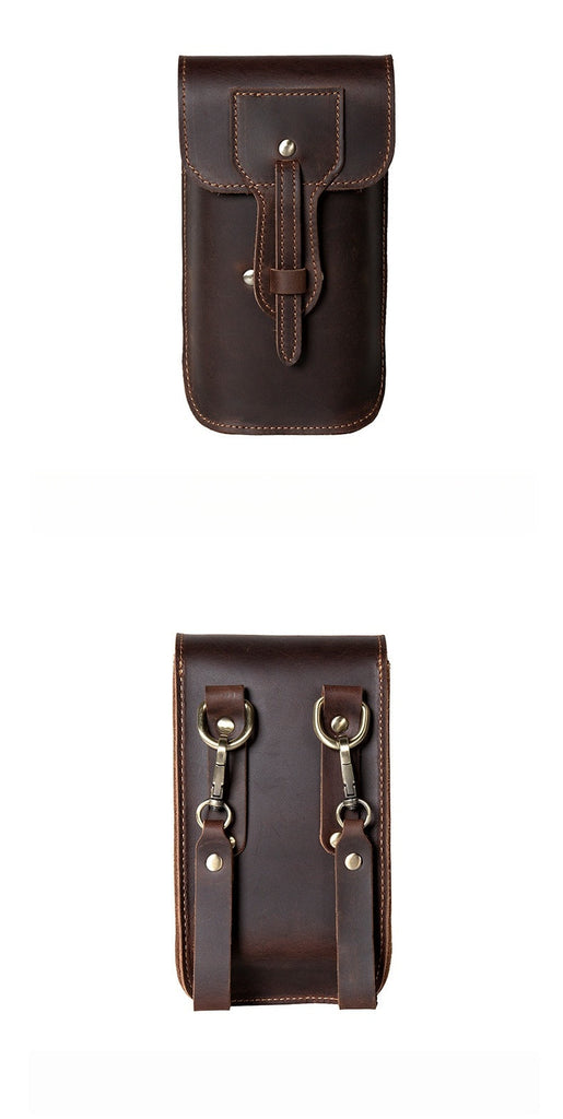 Leather Belt Phone Pouch | Vintage Crazy Horse Leather Multi-Pocket Organizer