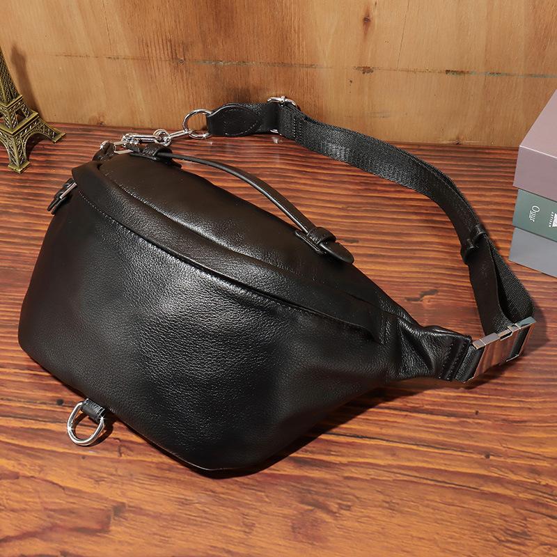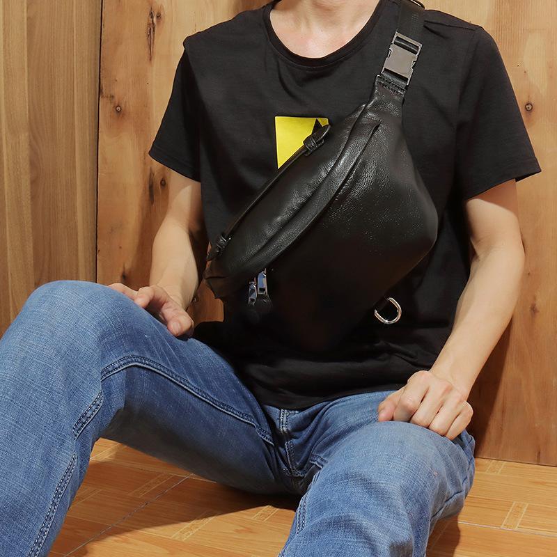 Black MENS LEATHER FANNY PACK BUMBAG Fanny Bag Black WAIST BAGS For Men