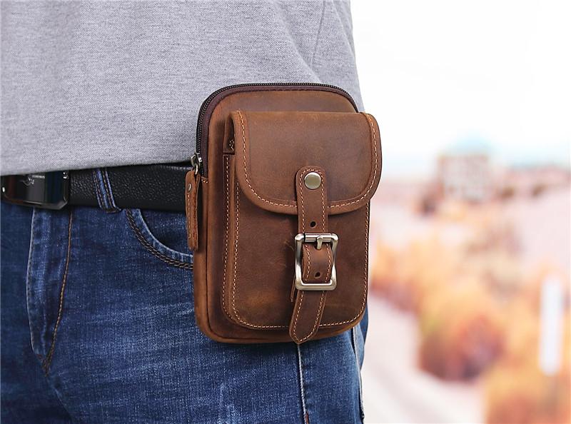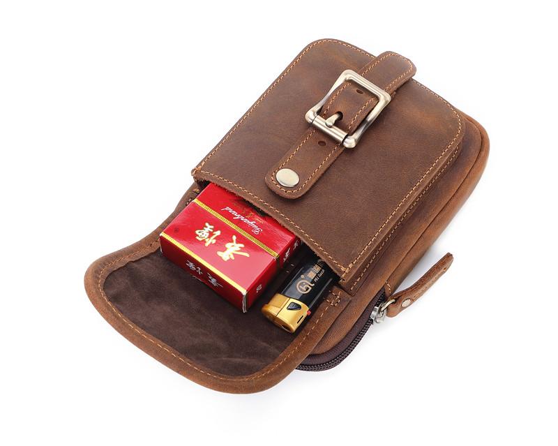 Design: Brown Leather Cell Phone Waist Pouches Side Bag Belt Bag For Men