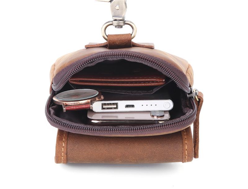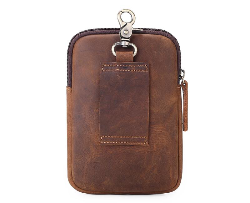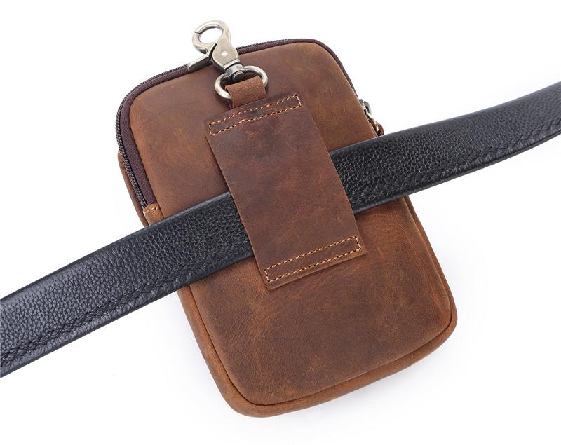 Design: Brown Leather Cell Phone Waist Pouches Side Bag Belt Bag For MenOverview: