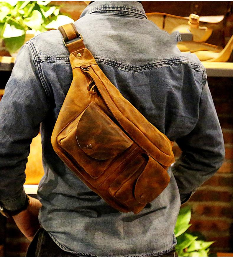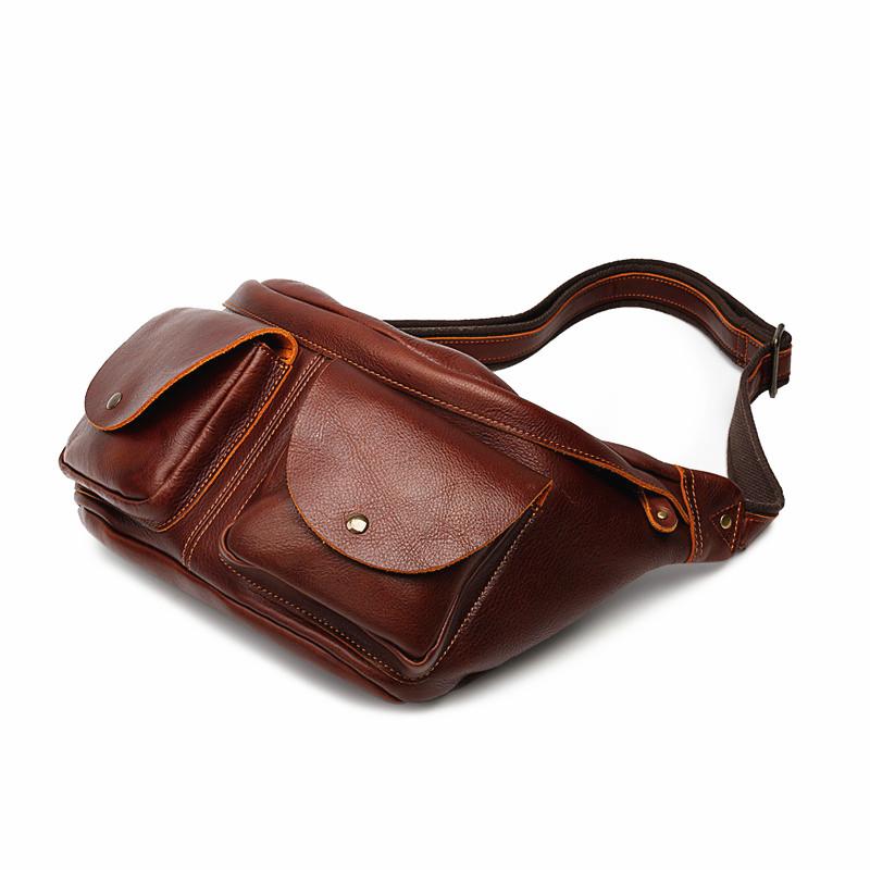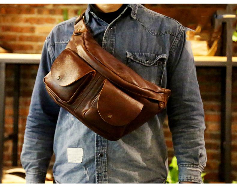 Design: Brown Leather Large Fanny Pack Mens Leather Belt Bag Crossbody Fanny Pack for Men