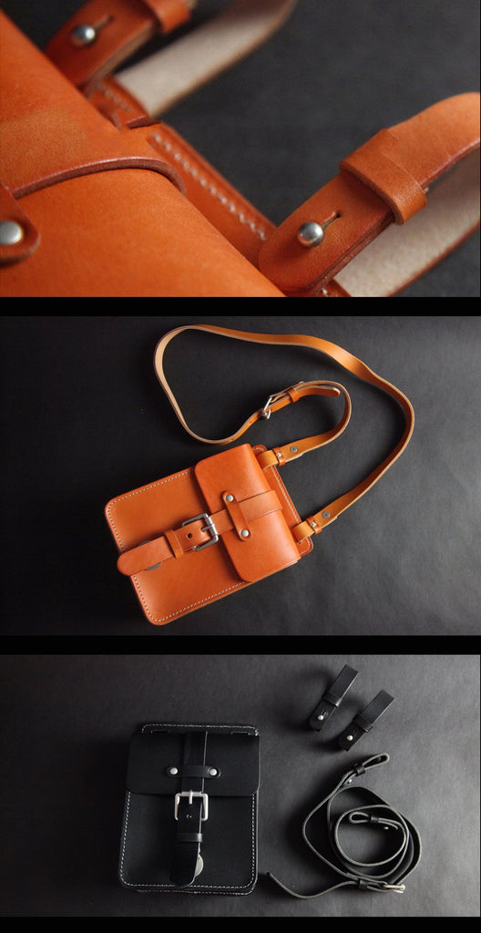Design:  Handmade Black Brown Leather Mens Waist Bag Belt Pouch Phone Hip Bag For Men