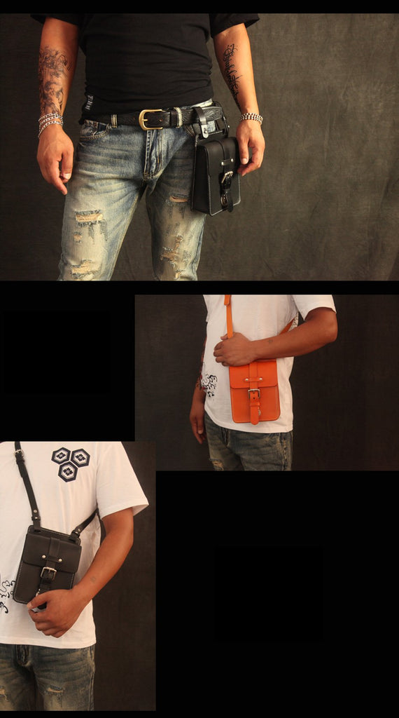 Style: Handmade Black Brown Leather Mens Waist Bag Belt Pouch Phone Hip Bag For Men
