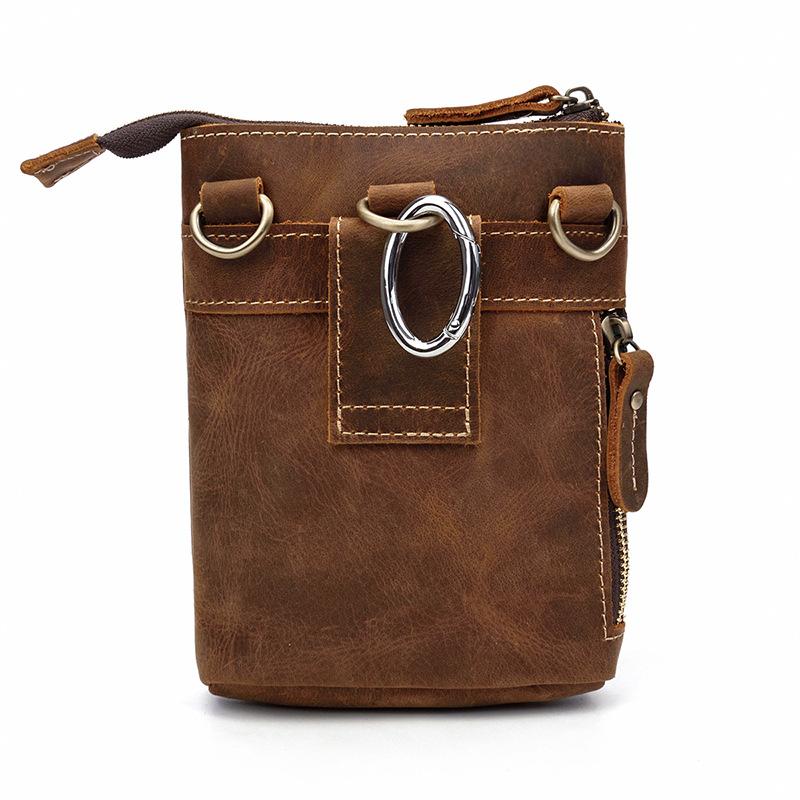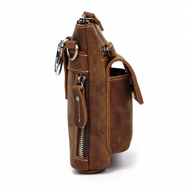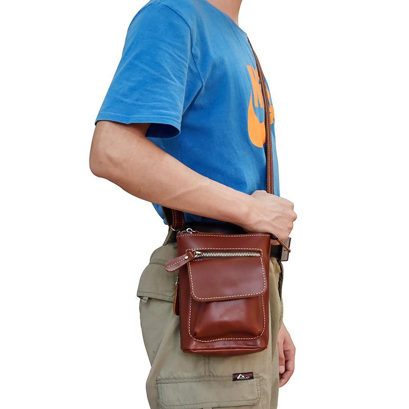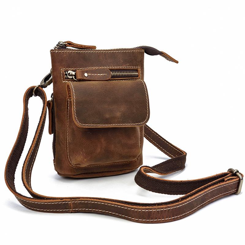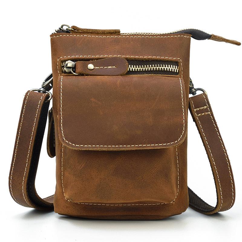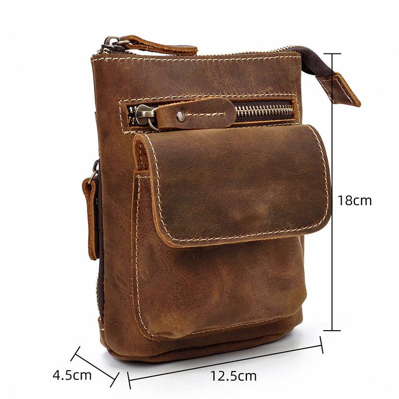 Design: Casual Dark Brown Leather Messenger Bag Men's Small Side Bag Mini Phone Bag Courier Bag For MenOverview: