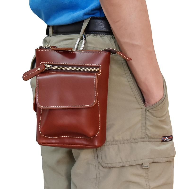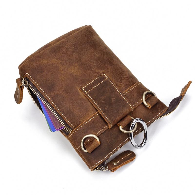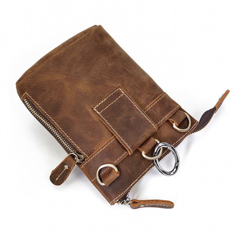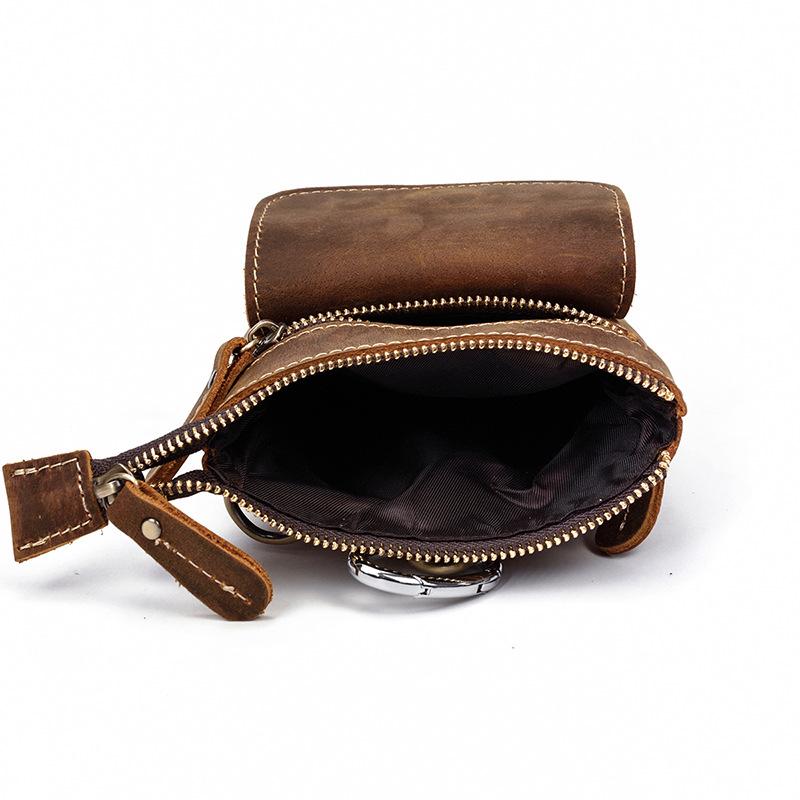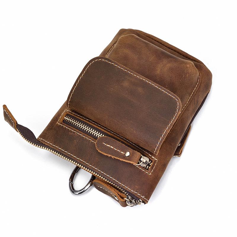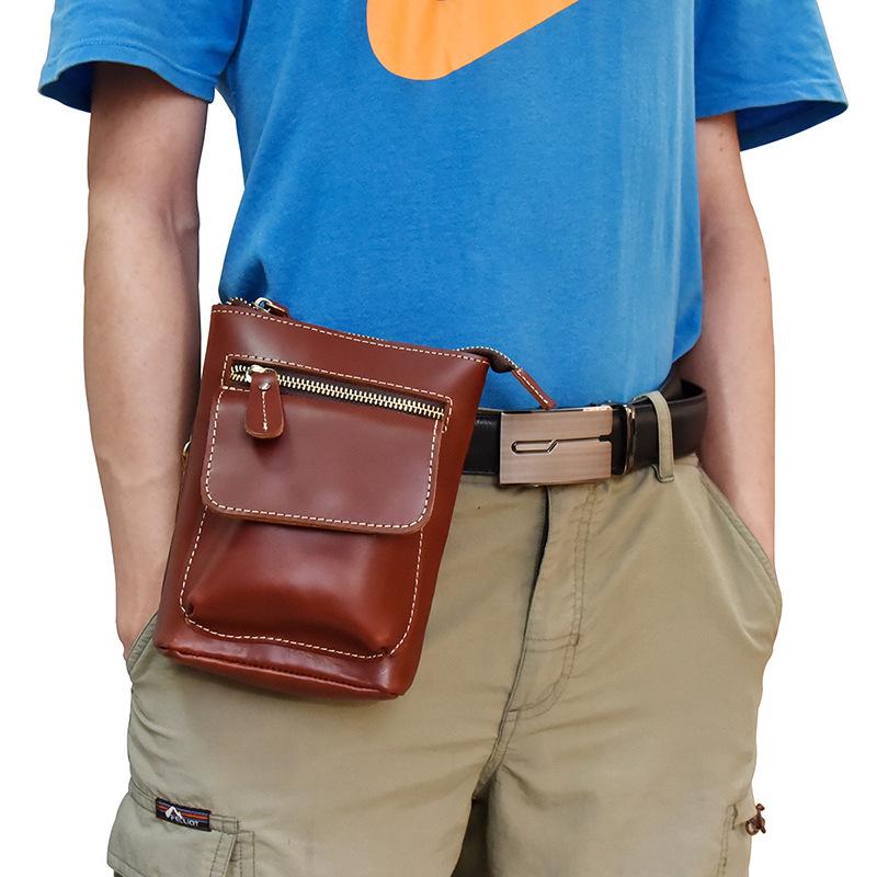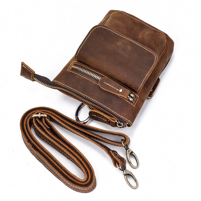 Design: Casual Dark Brown Leather Messenger Bag Men's Small Side Bag Mini Phone Bag Courier Bag For MenOverview: