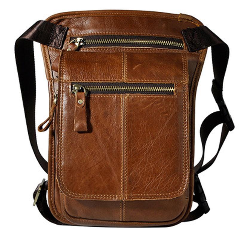 Design: Cool Biker Mens Leather Drop Leg Bag Waist Bag Side Bag Shoulder Bag for Men