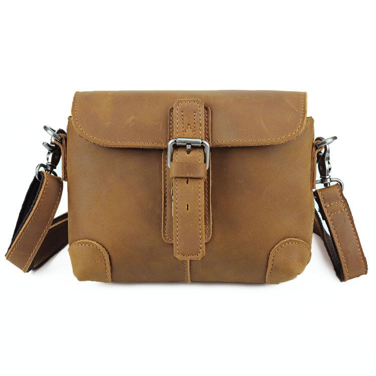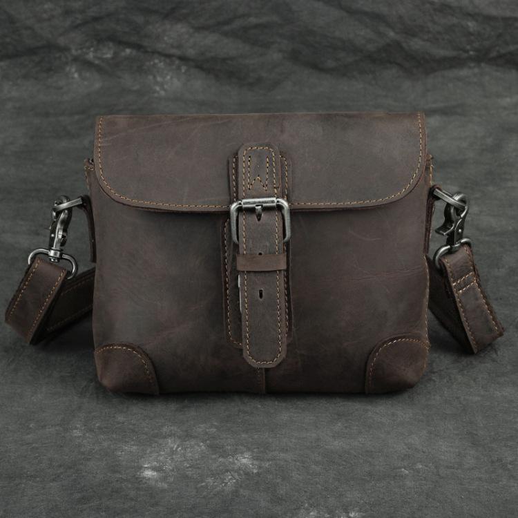 Design: Cool Brown Leather Men's 8 inches Waist Bag Belt Bag Dark Brown Messenger Bag For MenOverview: