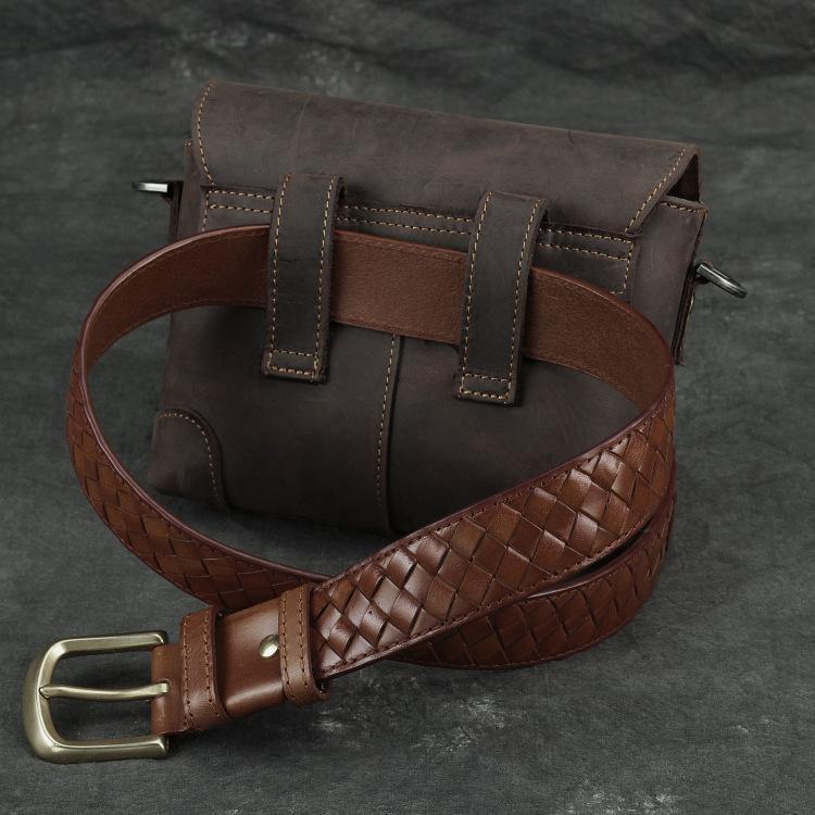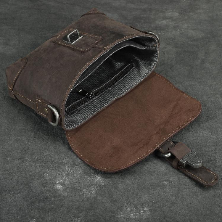 Design: Cool Brown Leather Men's 8 inches Waist Bag Belt Bag Dark Brown Messenger Bag For Men