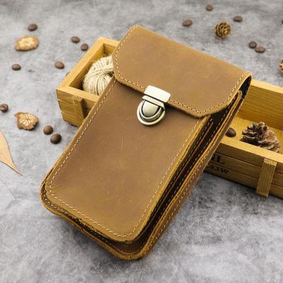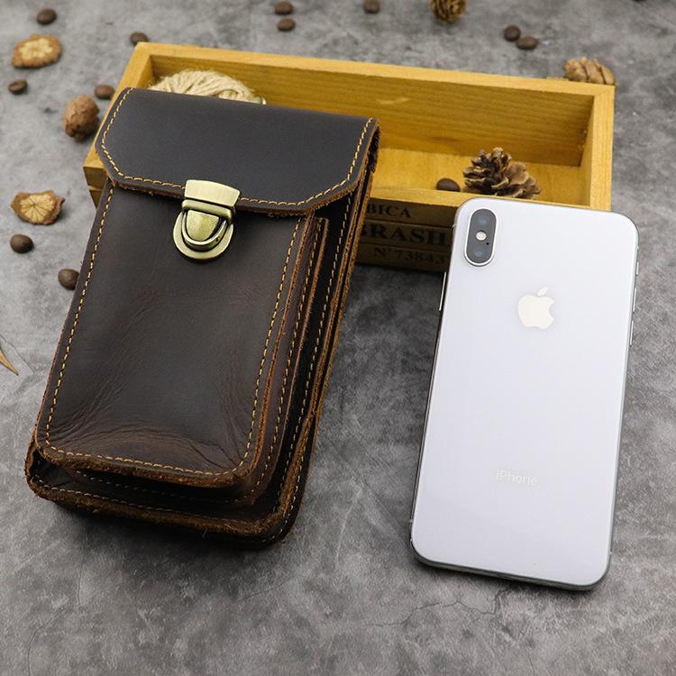 Design: Cool Brown Leather Mens Belt Case Belt Pouch Mini Waist Pouch Belt Bags Phone Bag For Men
