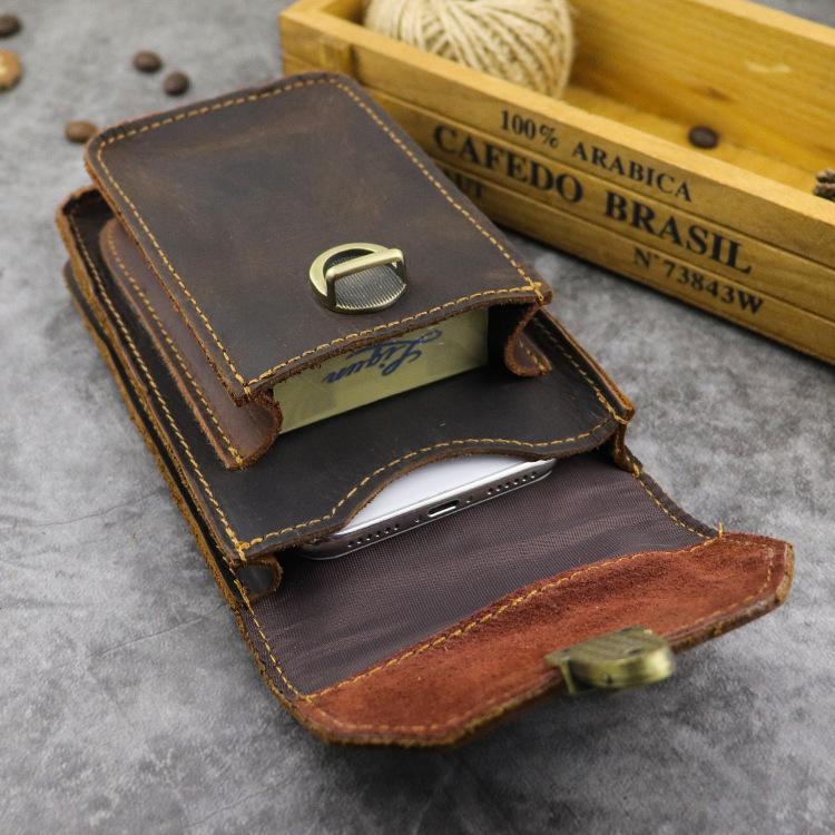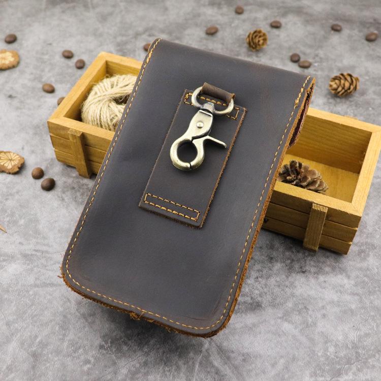 Style: Cool Brown Leather Mens Belt Case Belt Pouch Mini Waist Pouch Belt Bags Phone Bag For Men