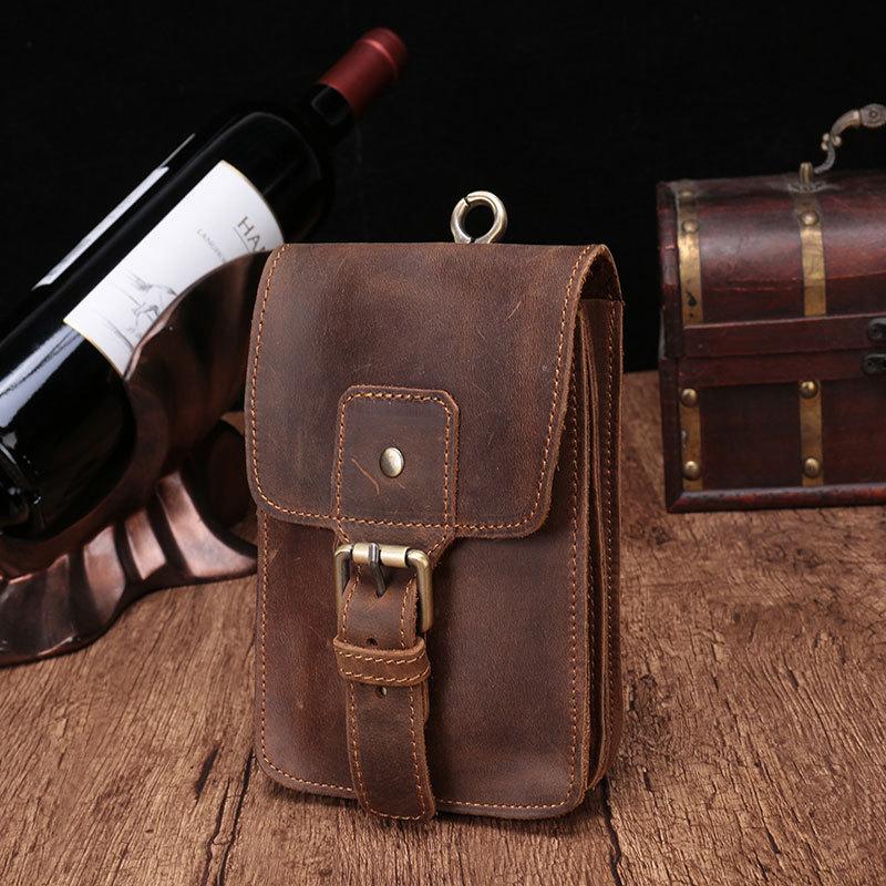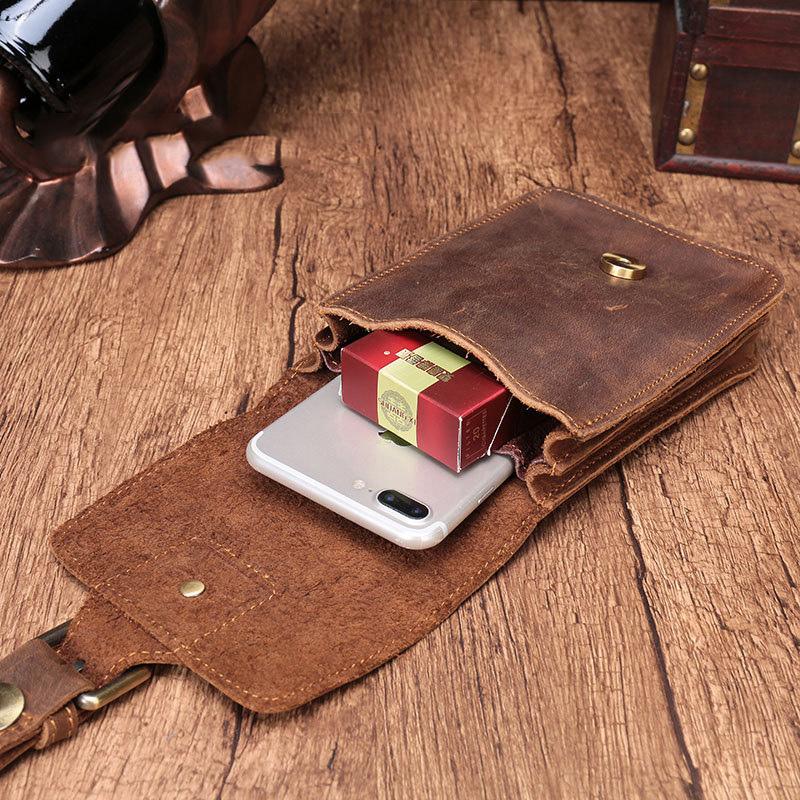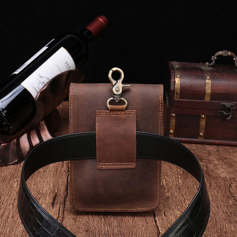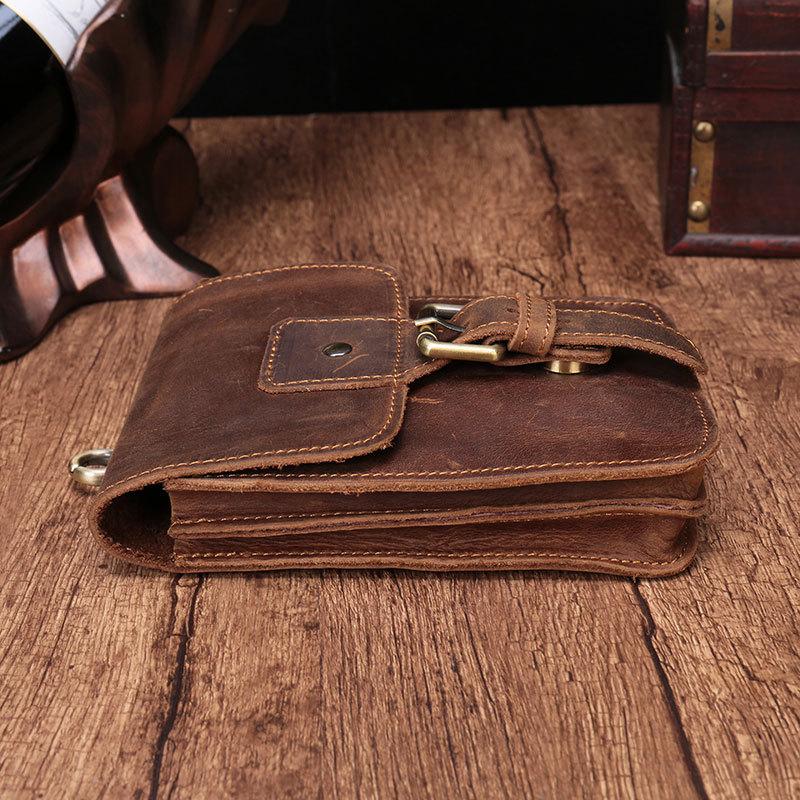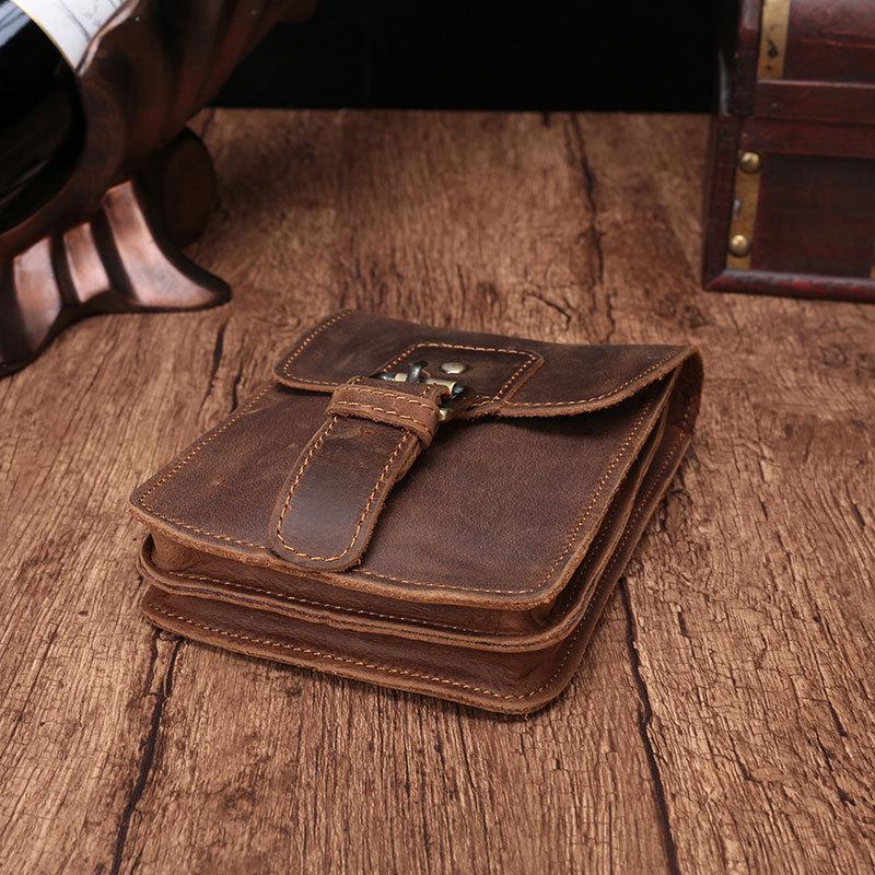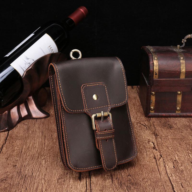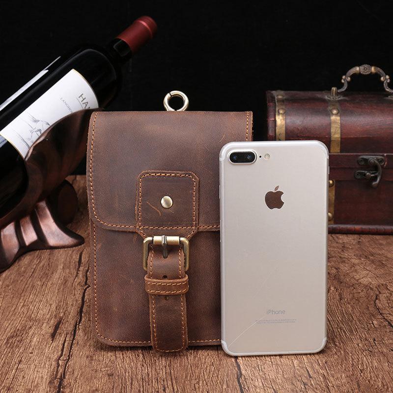 Design: Cool Brown Leather Men's Multi-functional Cell Phone Holster Small Belt Bag Mini Messenger Bag For Men