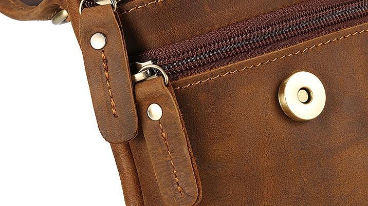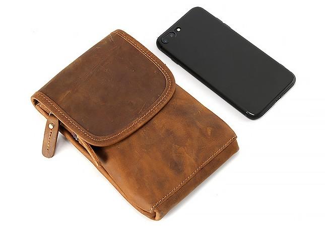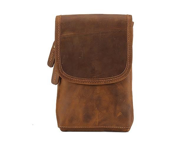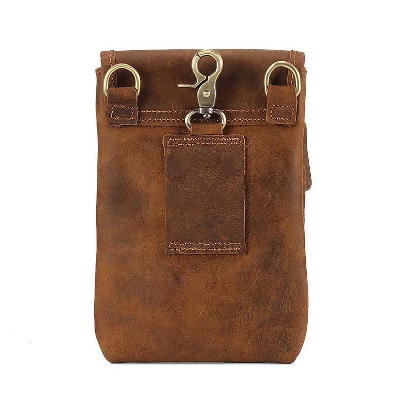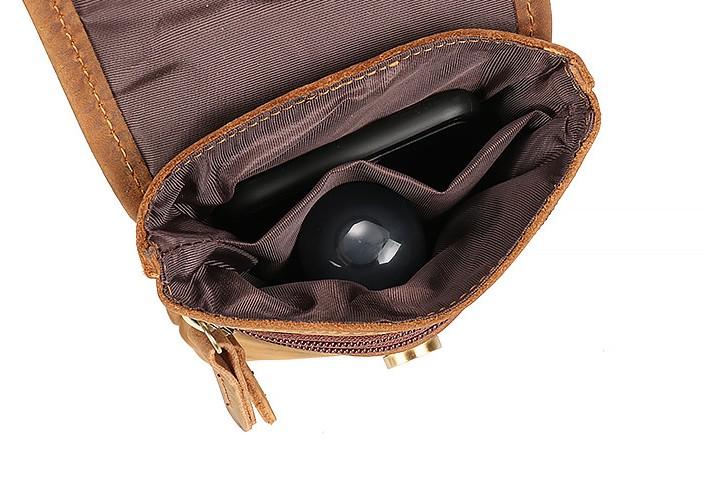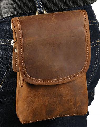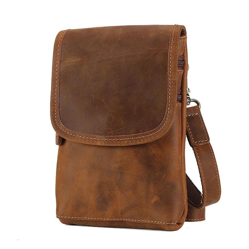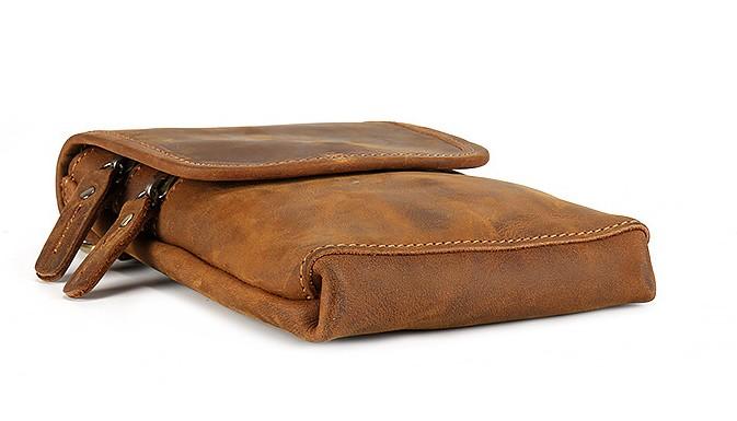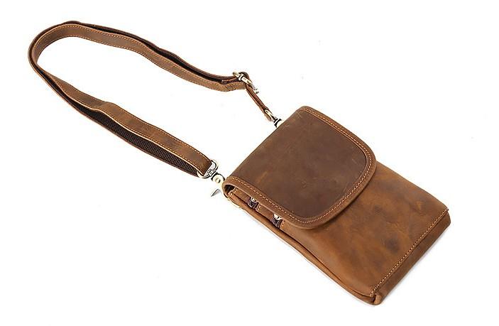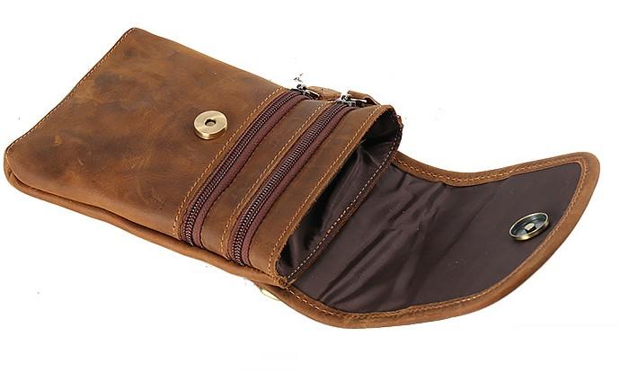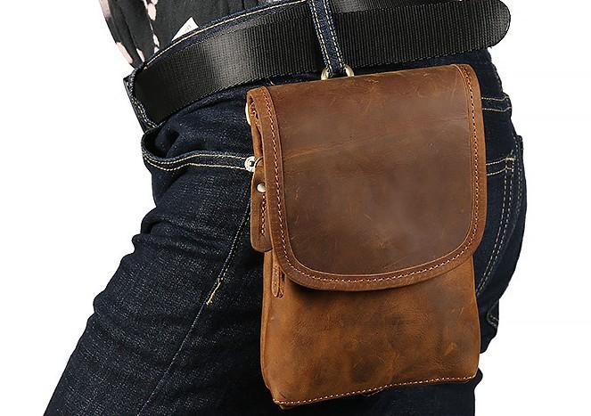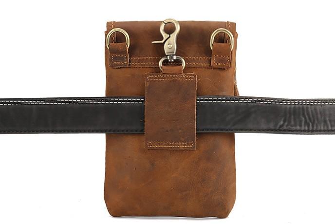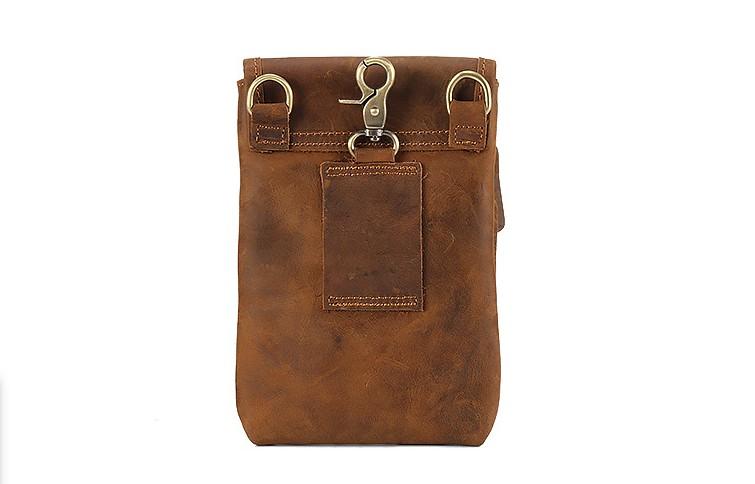Design: Cool Brown Leather Mens Belt Pouch Mini Shoulder Bag Belt Bag For Men