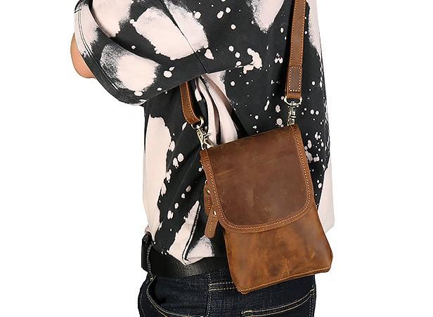 Style: Cool Brown Leather Mens Belt Pouch Mini Shoulder Bag Belt Bag For Men