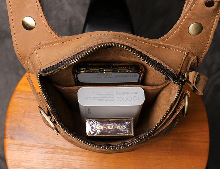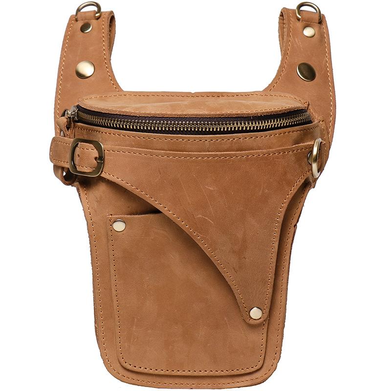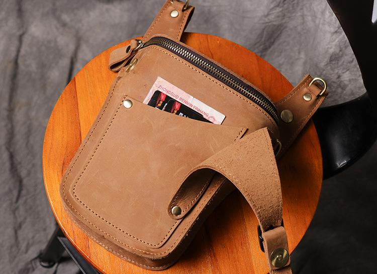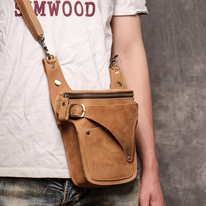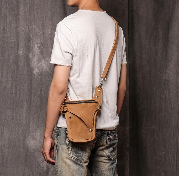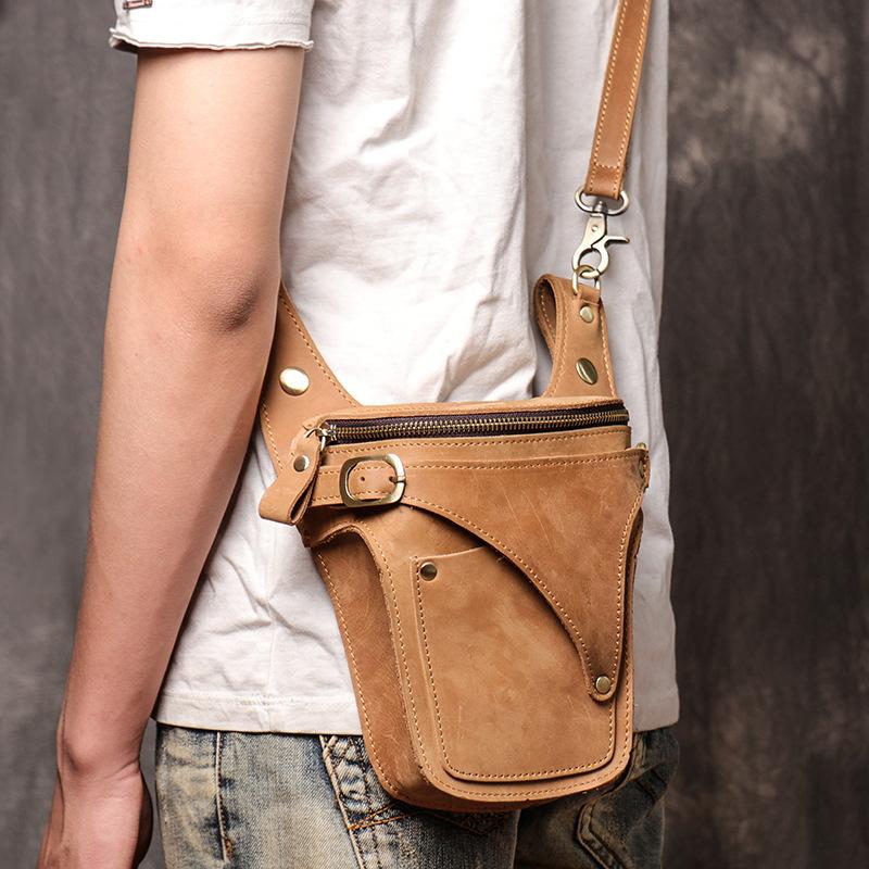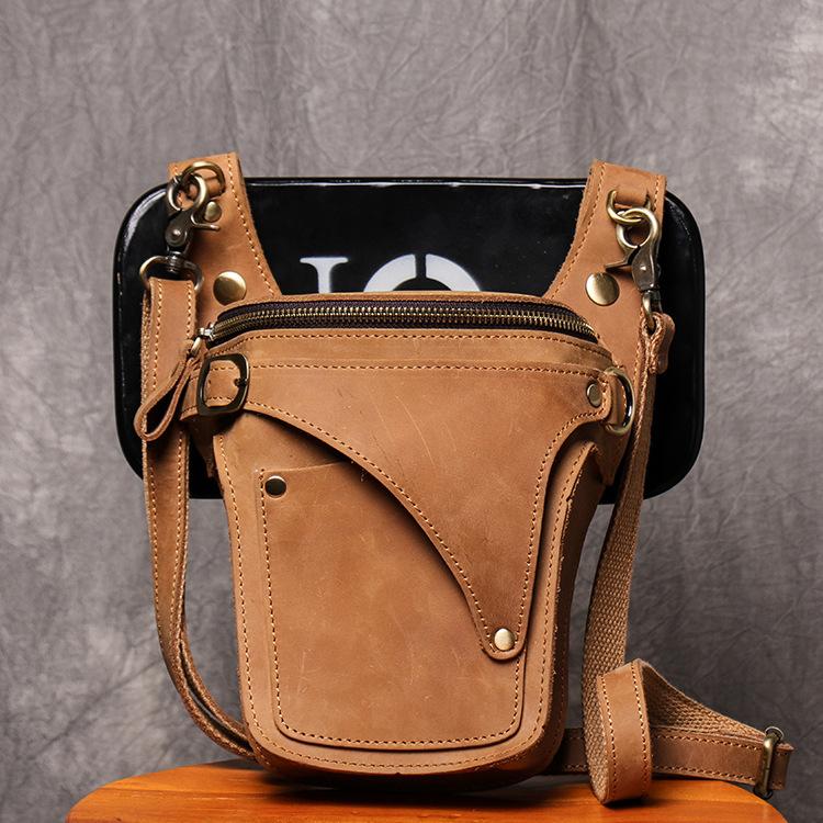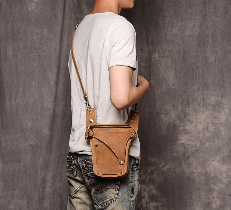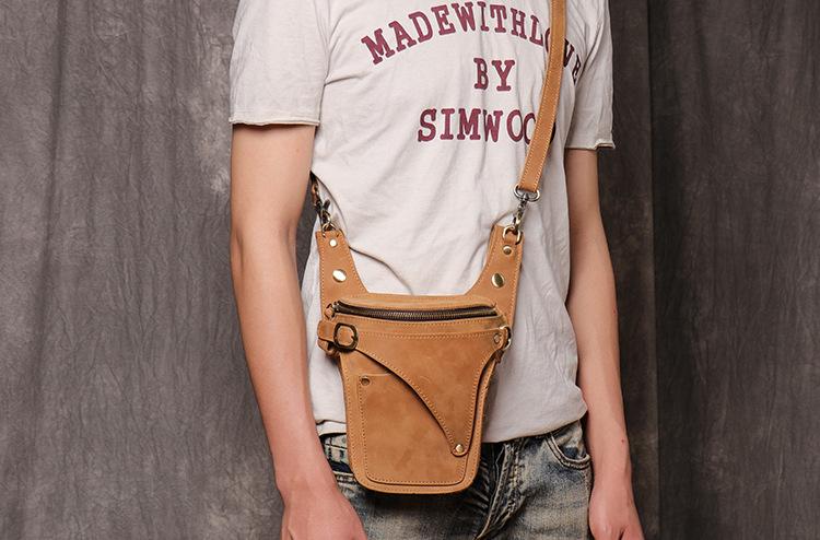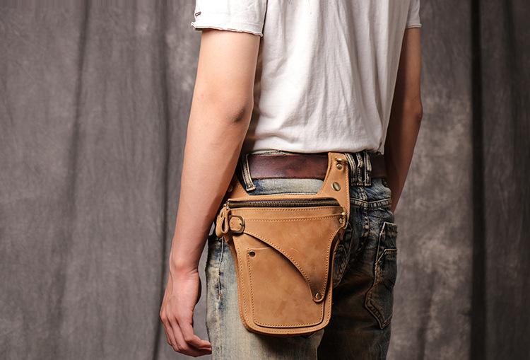 Design: Cool Brown Leather Men's Motorcycle Belt Pouch Belt Bag Drop Leg Bag Waist Bag For Men