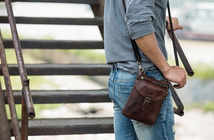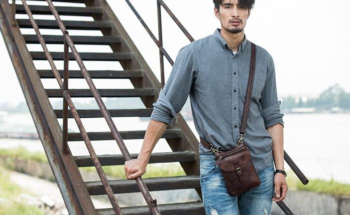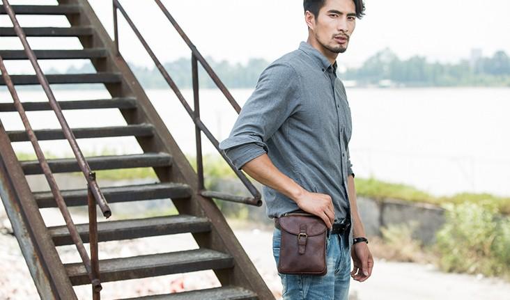 Style: Leather Belt Pouch Phone Case Mens Waist Bag Shoulder Bag for Men
