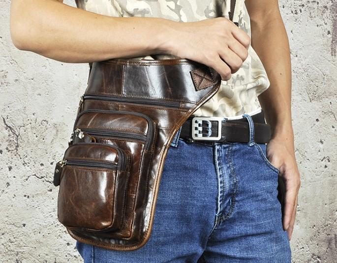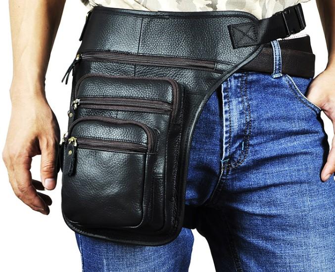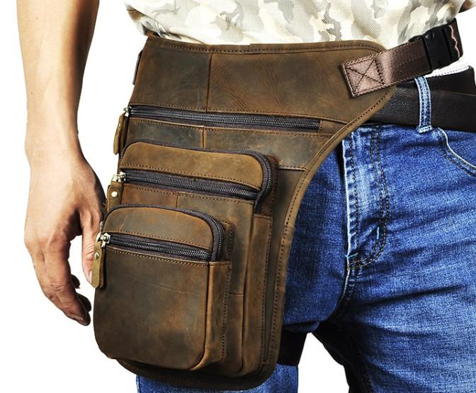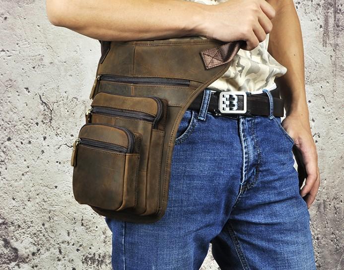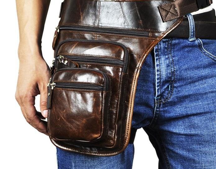 Design: Cool Leather Drop Leg Bag Belt Pouch Mens Waist Bag Shoulder Bag for Men