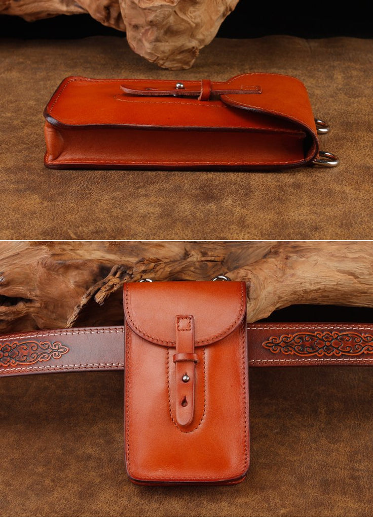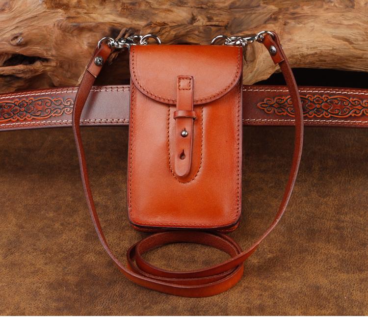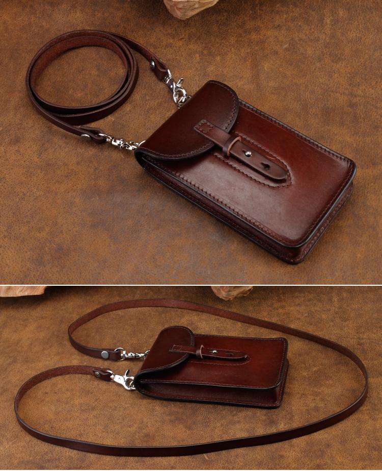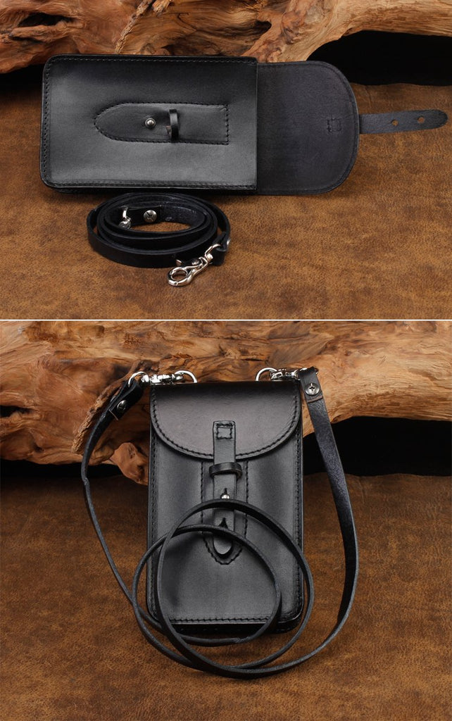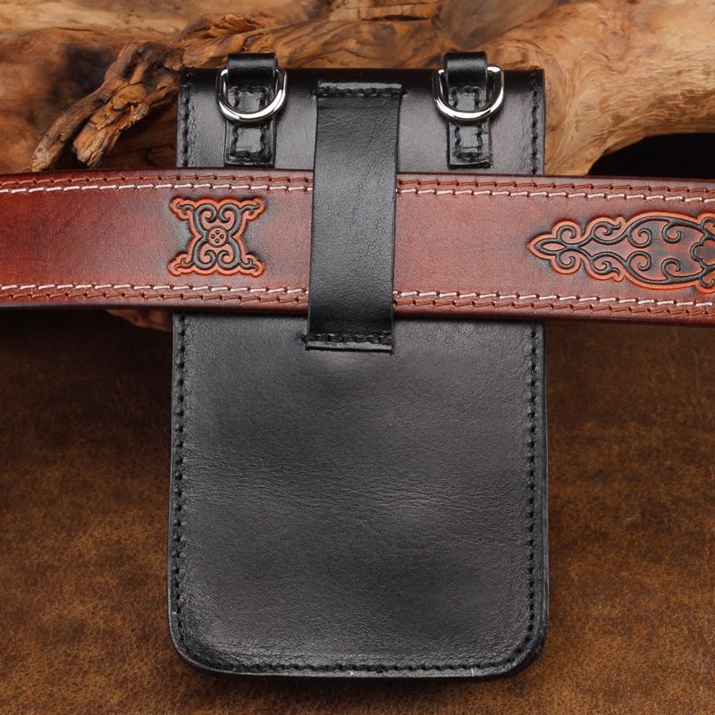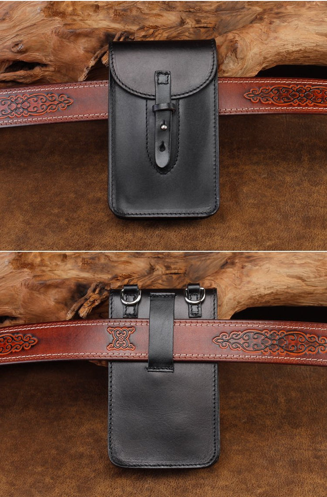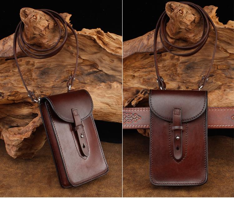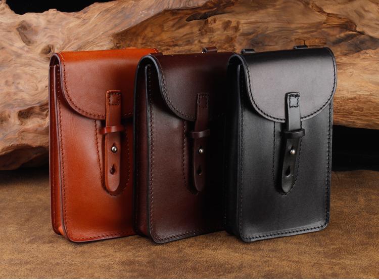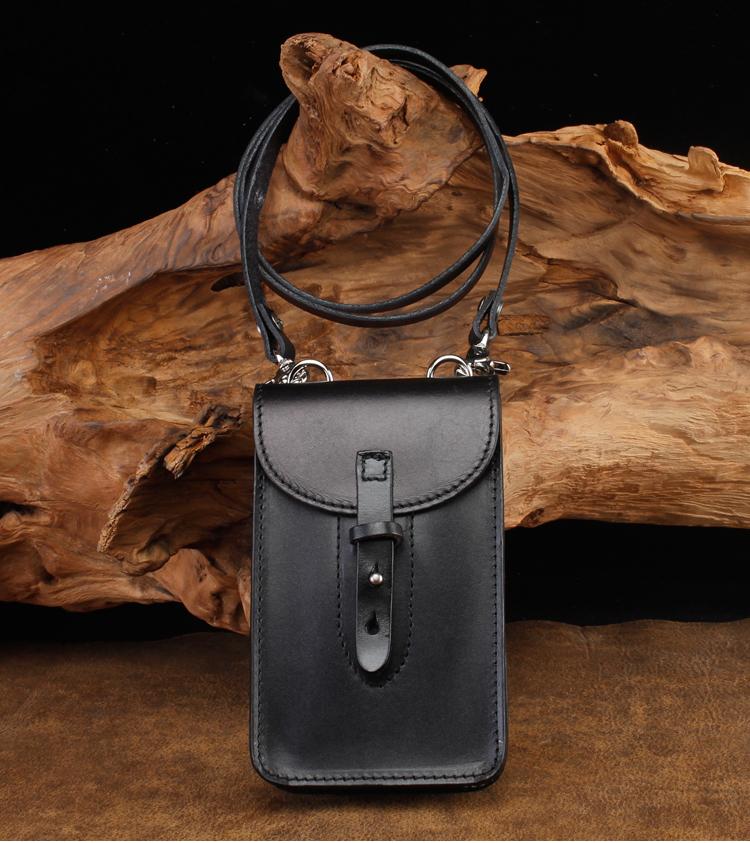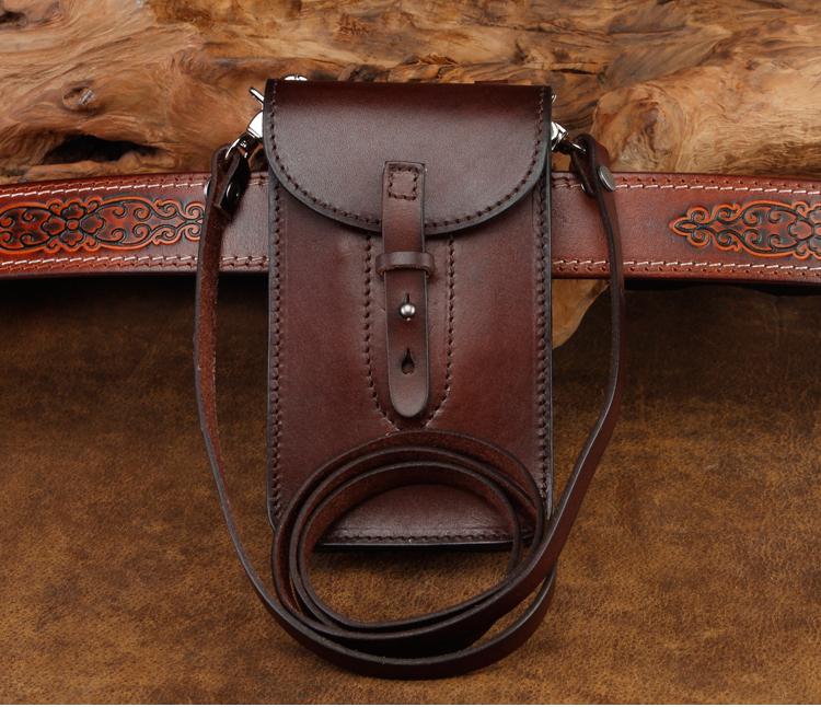 Cool Leather Mens Biker Cell Phone Holster Belt Pouch Side Bag Shoulder Bag for Men