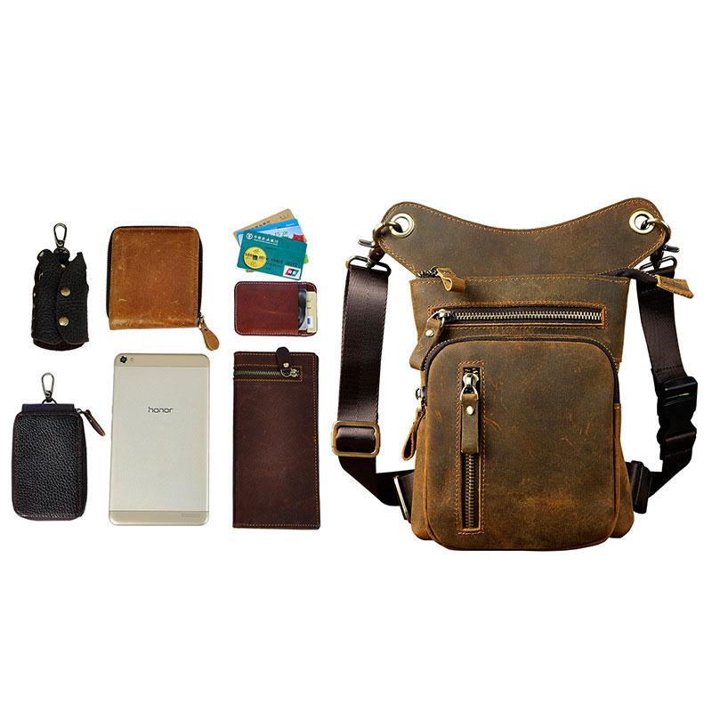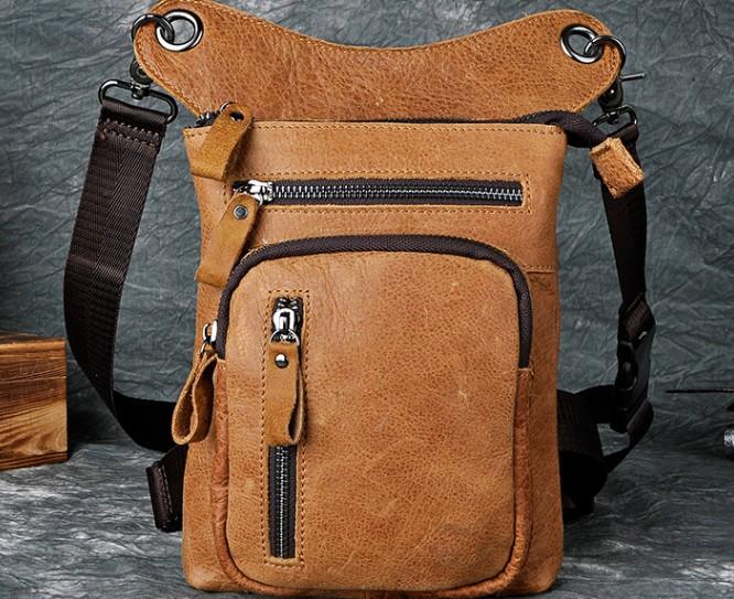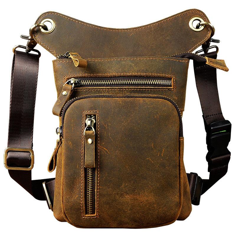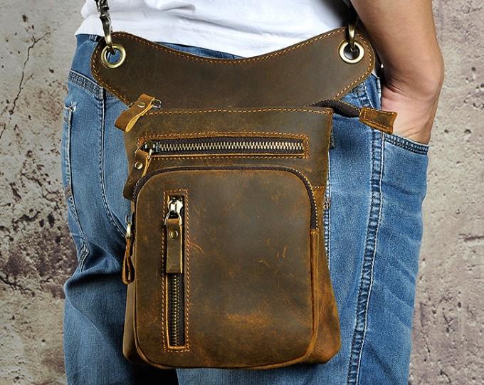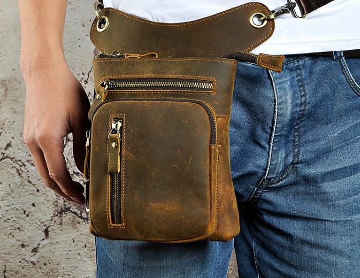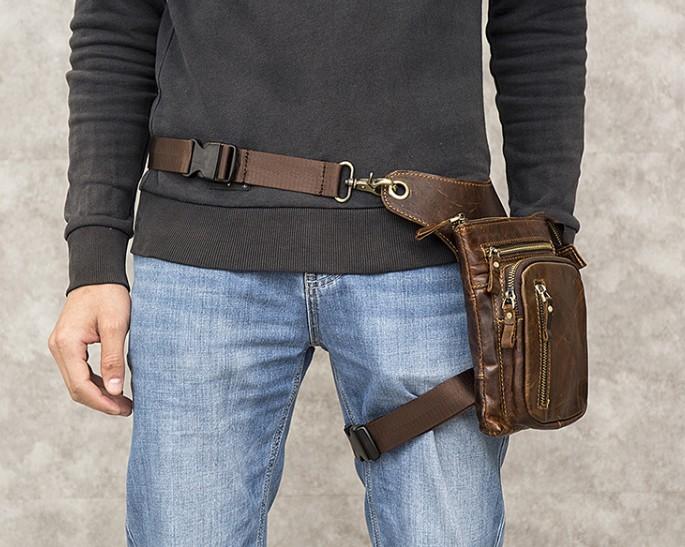 Design: Cool Leather Drop Leg Bag Belt Pouch Mens Waist Bag Shoulder Bag for Men