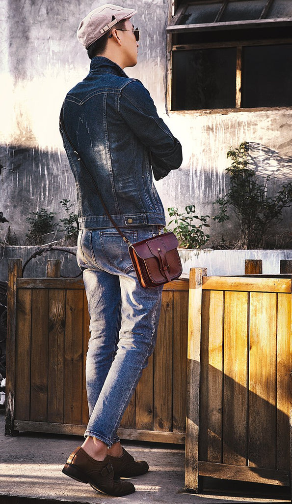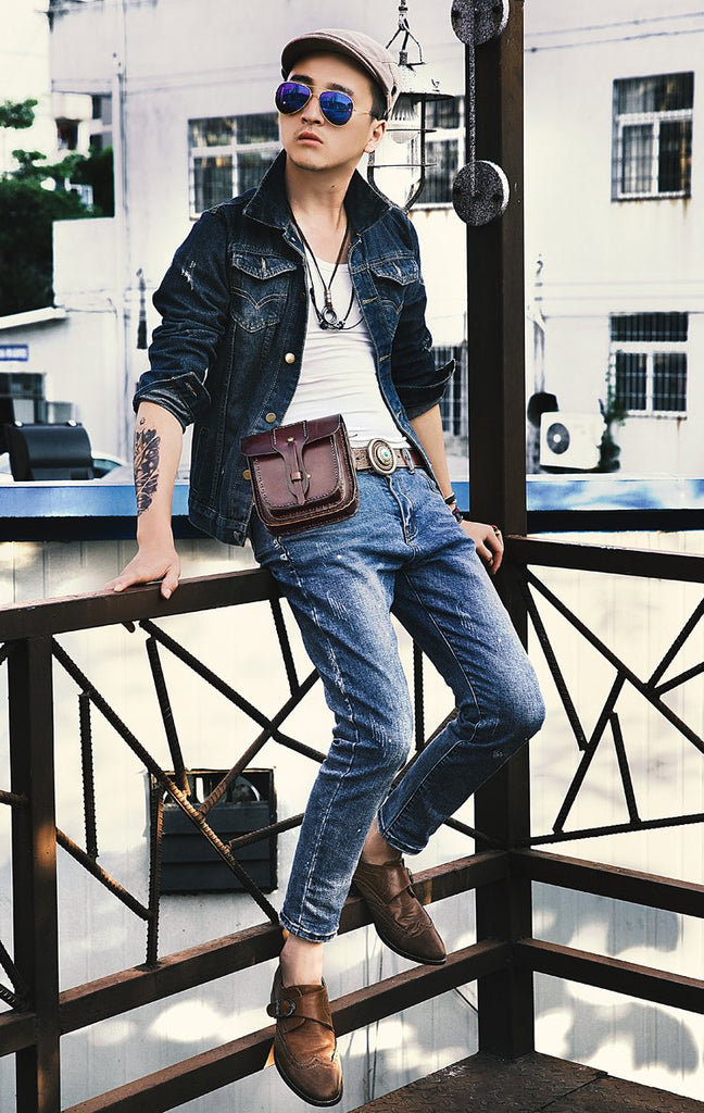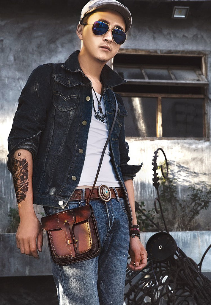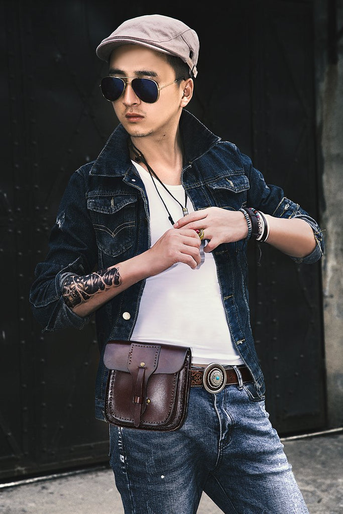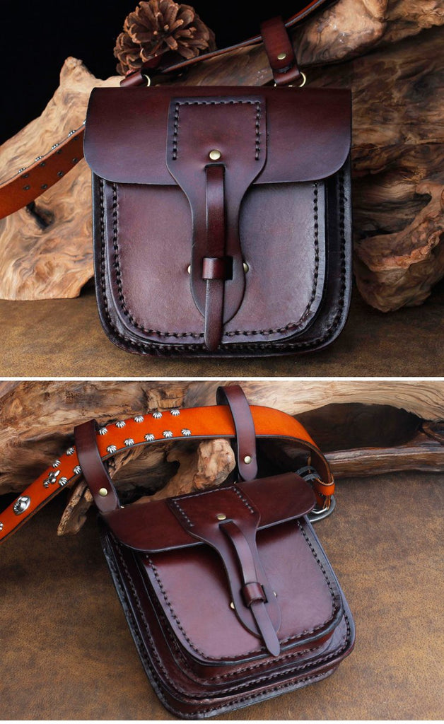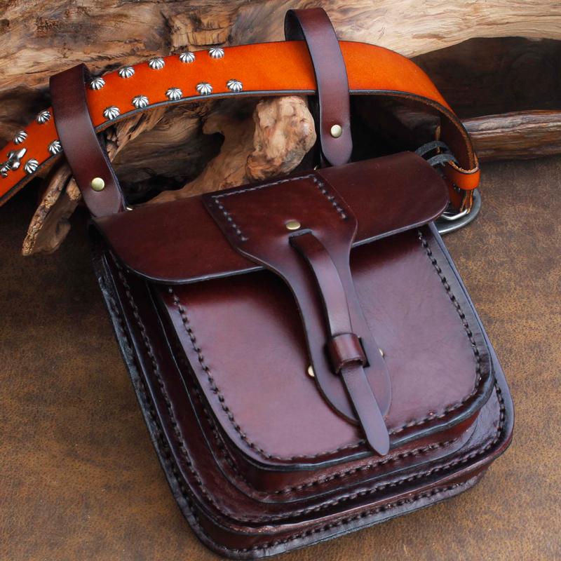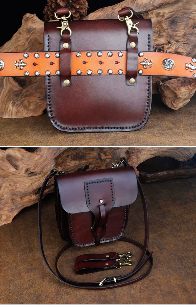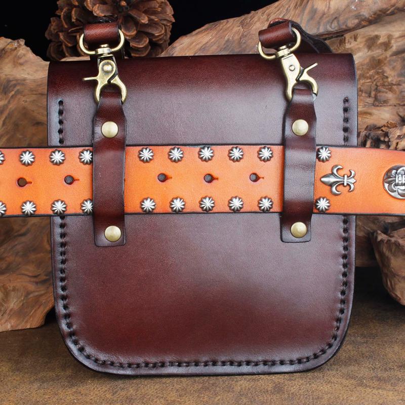 Design: Cool Leather Mens large Biker Belt Pouch Waist Bag Side Bag Shoulder Bag for Men