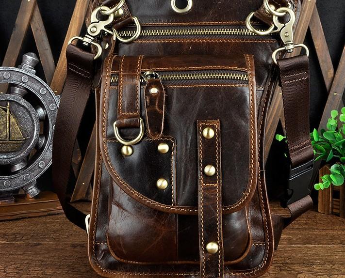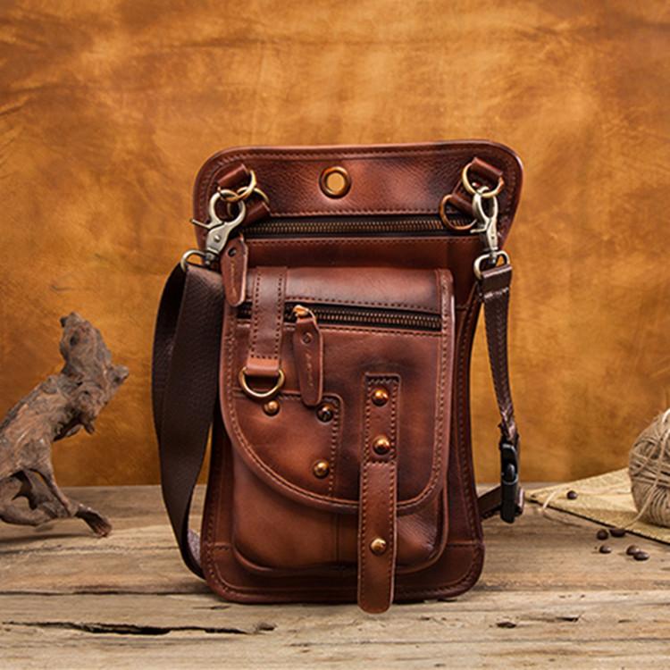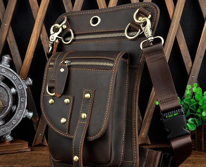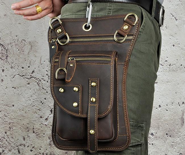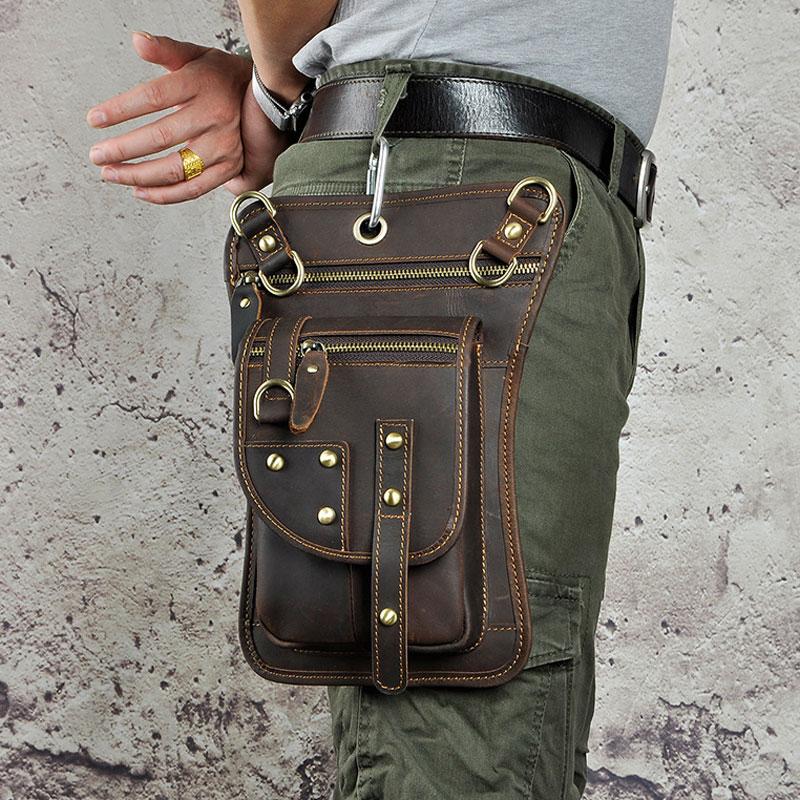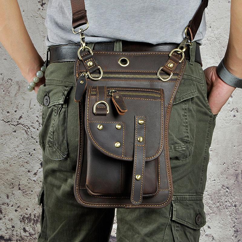 Design: Cool Leather Utility Drop Leg Bag Belt Pouch Mens Waist Bag Shoulder Bag for Men