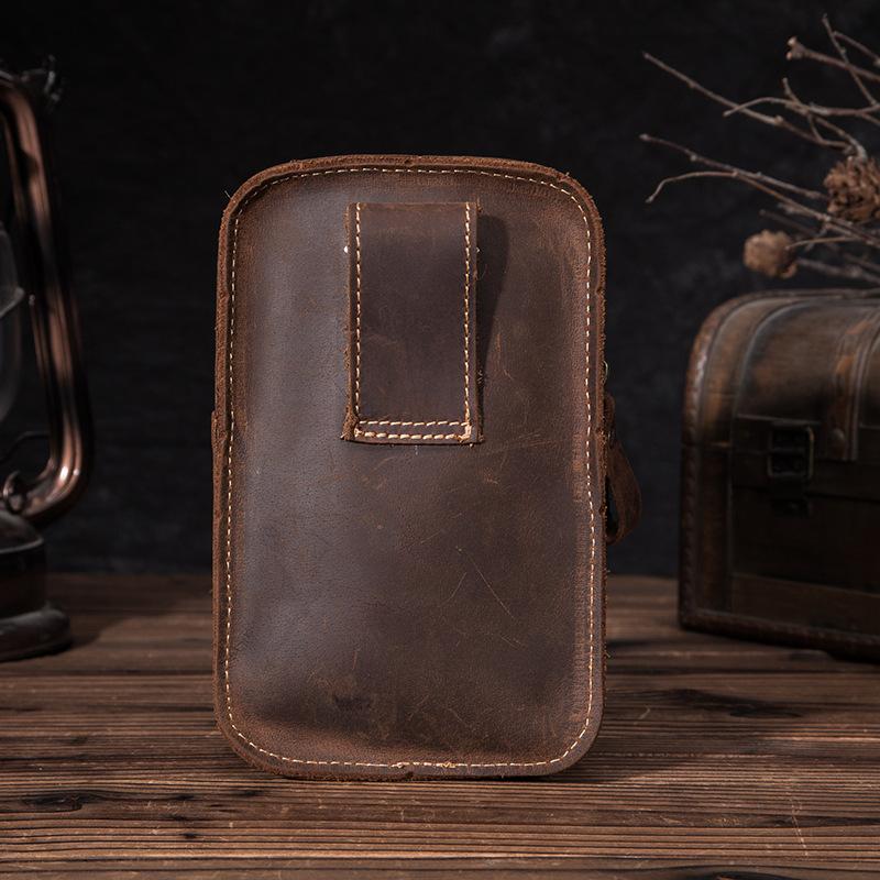 Design: Brown LEATHER MEN'S Phone Holster Small Belt Pouch Mini Waist Bag Vertical Phone Holster FOR MENOverview: