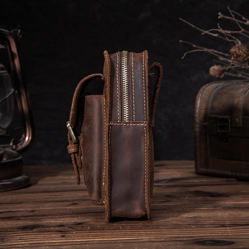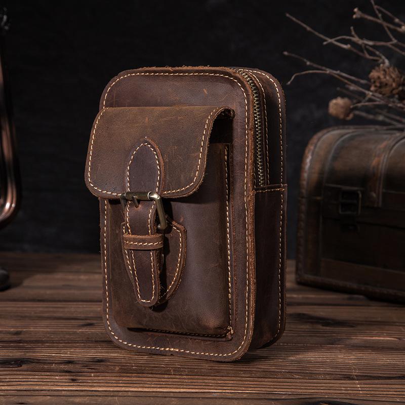 Design: Brown LEATHER MEN'S Phone Holster Small Belt Pouch Mini Waist Bag Vertical Phone Holster FOR MEN