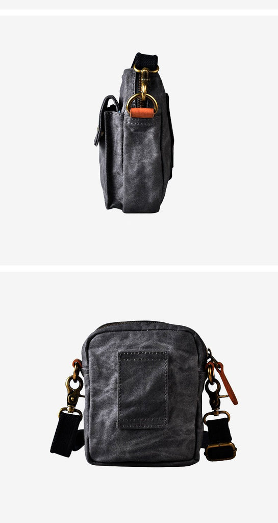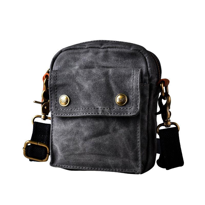 Style: Gray Cool Canvas Mens Mini Vertical Waist Bag Messenger Bags Side Bag for Men