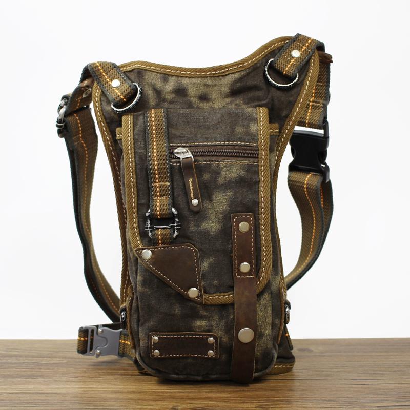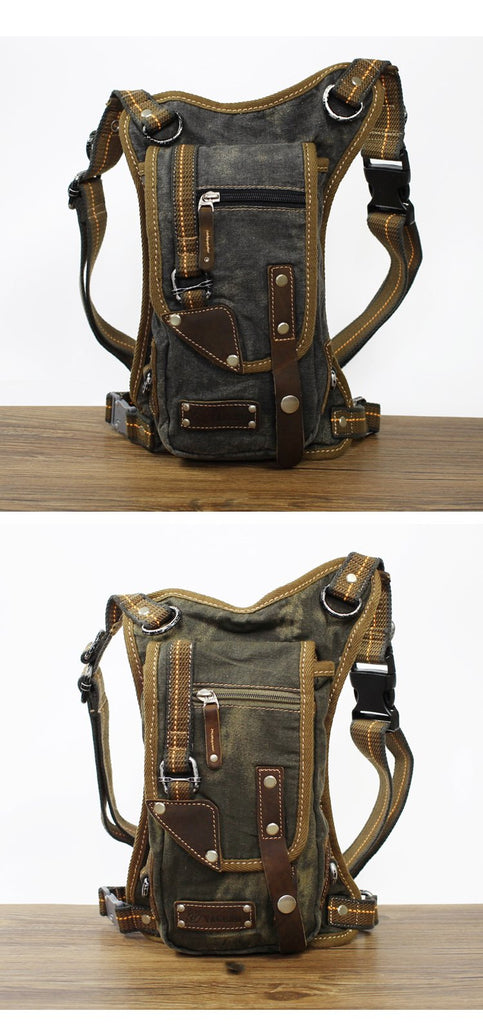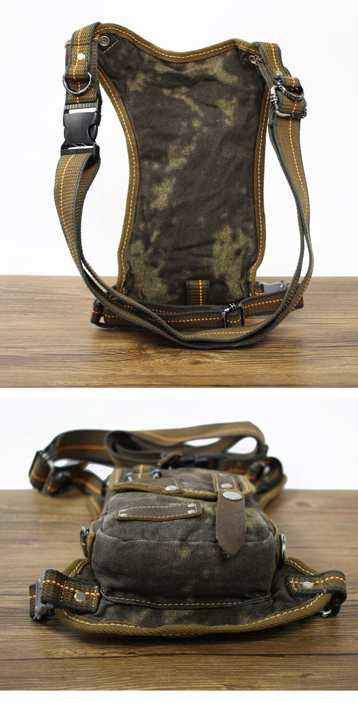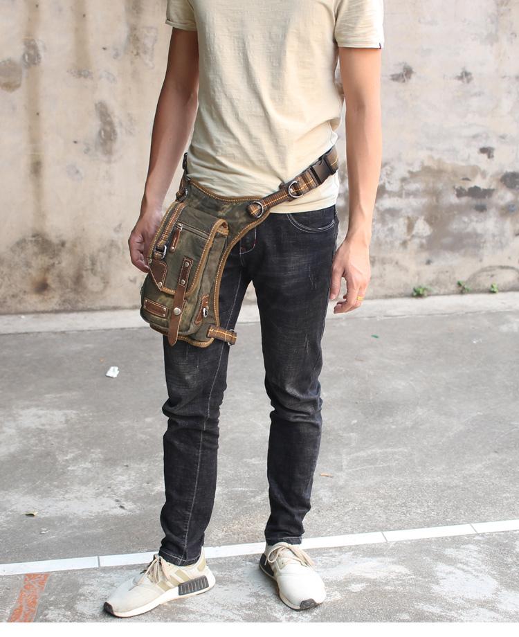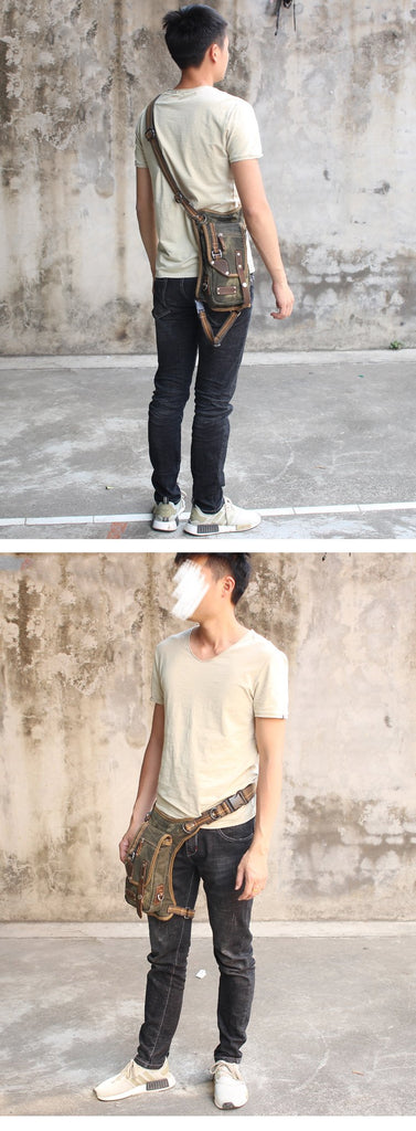 Style: Canvas Black Mens DropLeg Bag Green Waist Bag Hip Bag Small Side Bag For Men