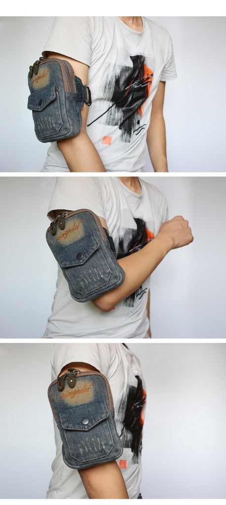 Style: Blue Jean Cell Phone HOLSTER Arm Pouches for Men Arm Bags Arm HOLSTER For Men