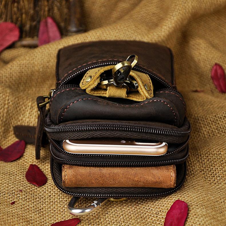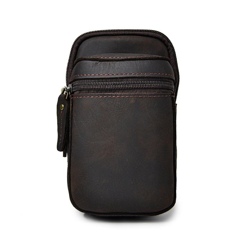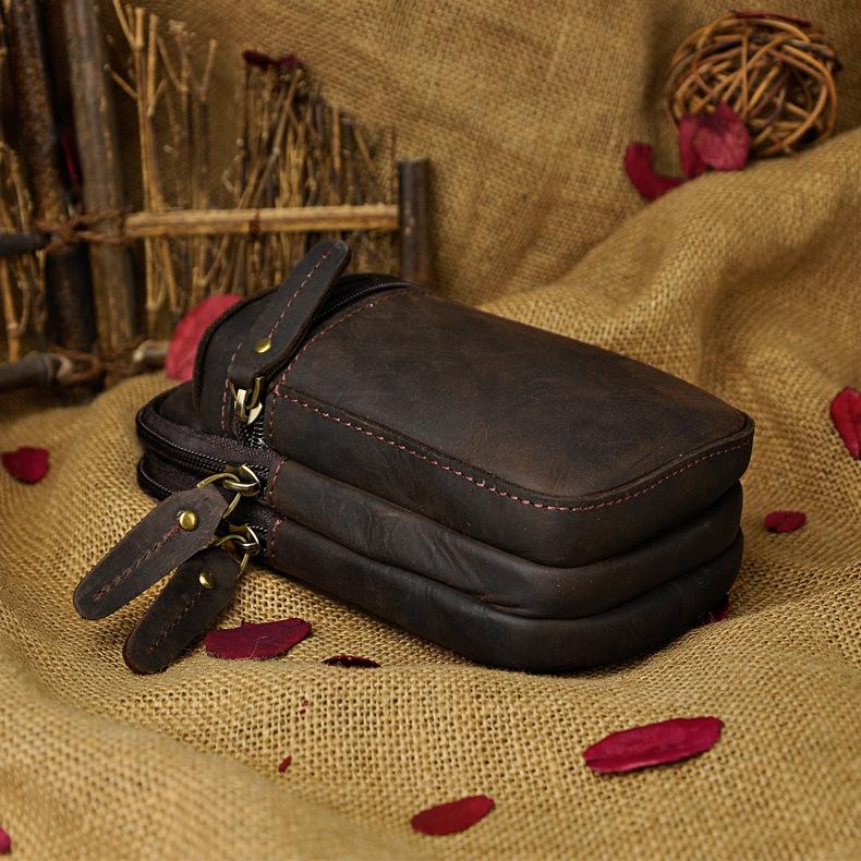 Design: Genuine Leather Mens Small Cigarette Cases Waist Bag Hip Pack Belt Bag Fanny Pack Bumbag for Men