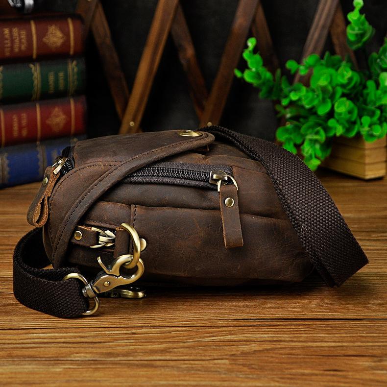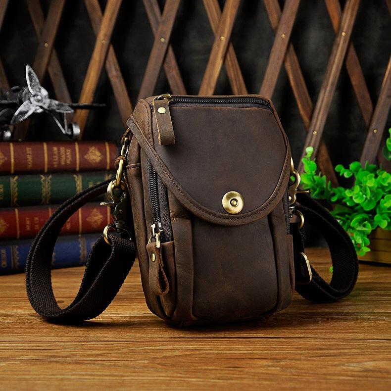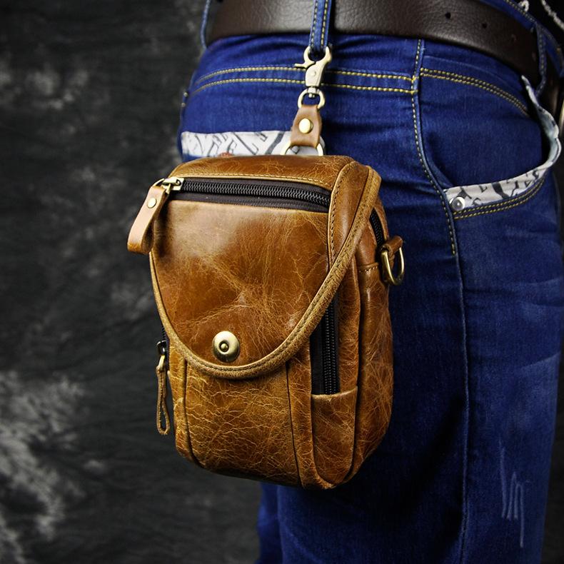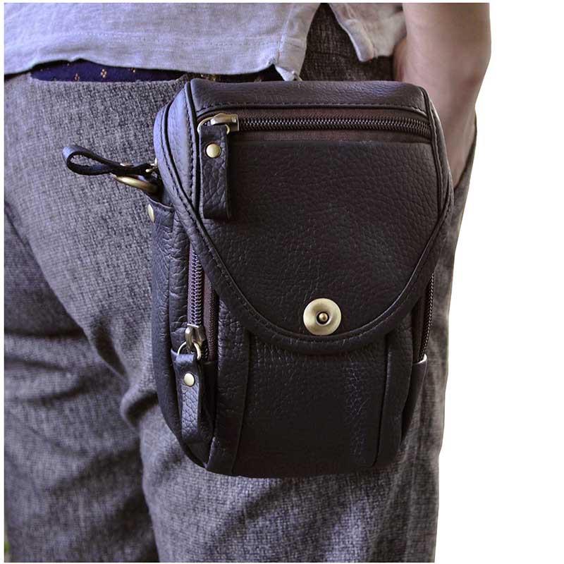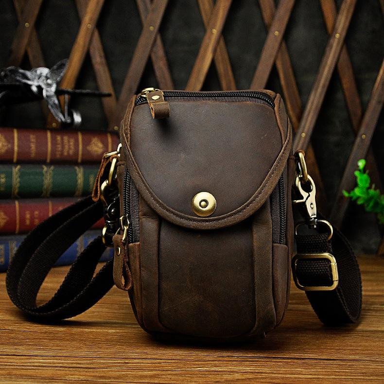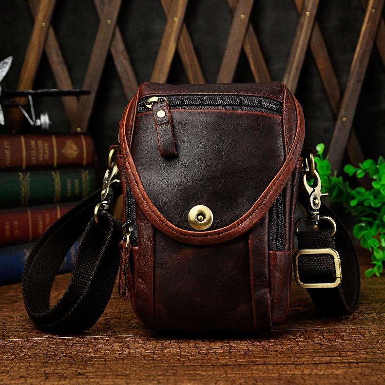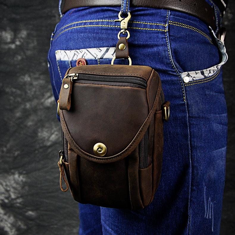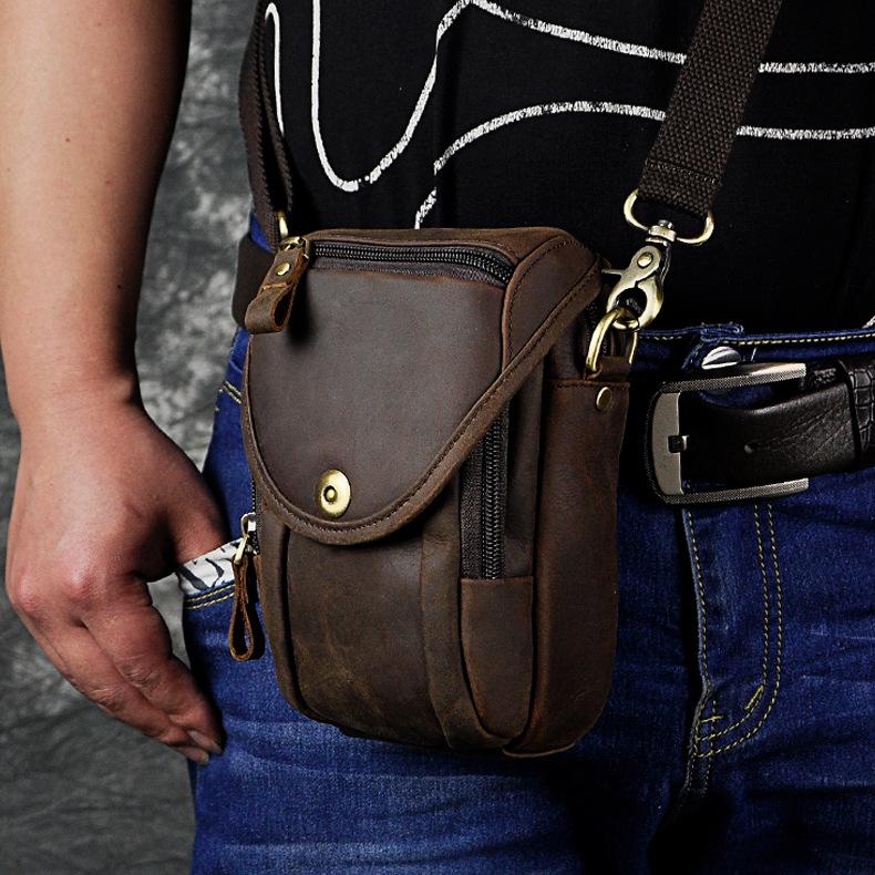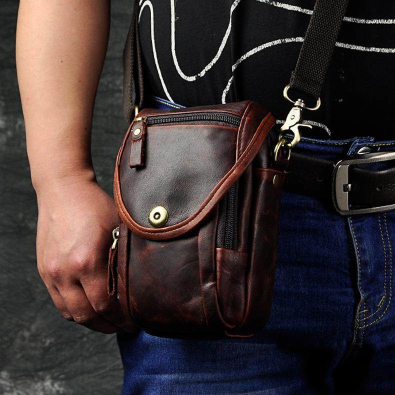 Design: Genuine Leather Mens Waist Bag Hip Pack Belt Bag Fanny Pack Bumbag for Men