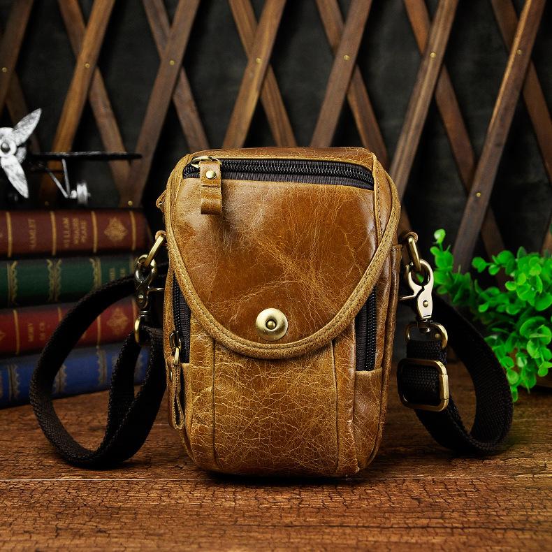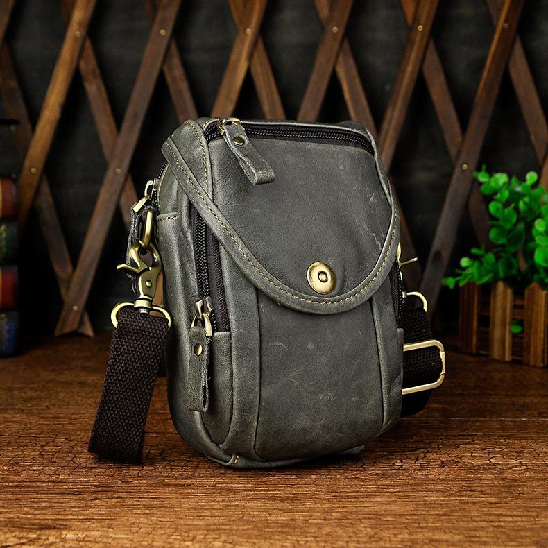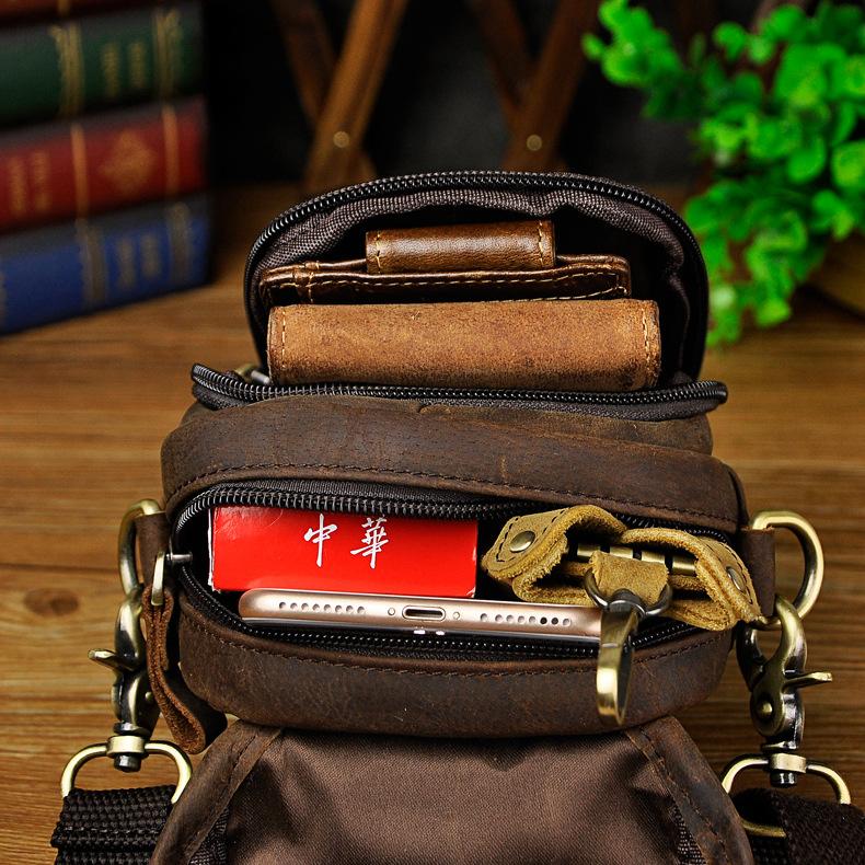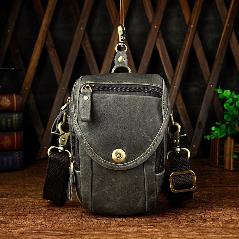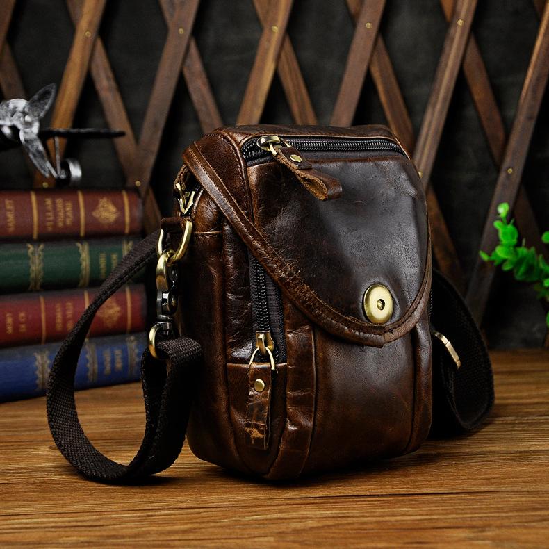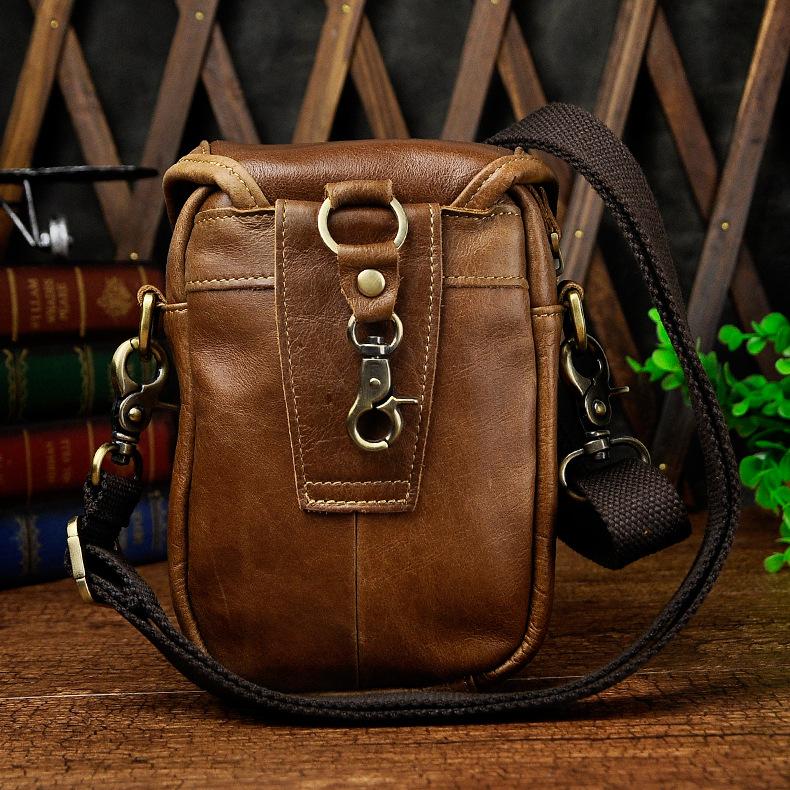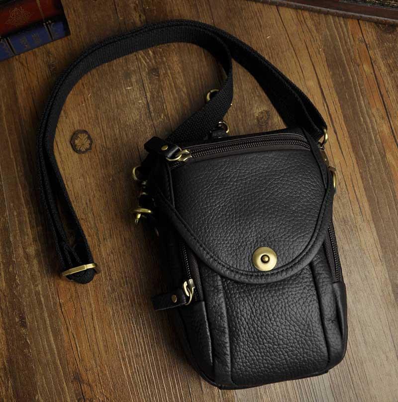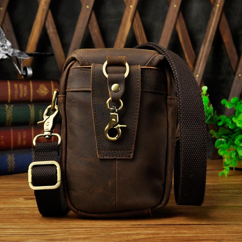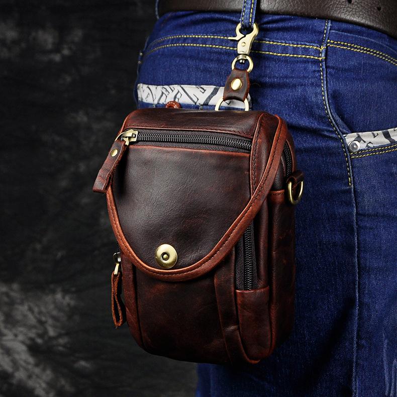 Design: Genuine Leather Mens Waist Bag Hip Pack Belt Bag Fanny Pack Bumbag for Men
