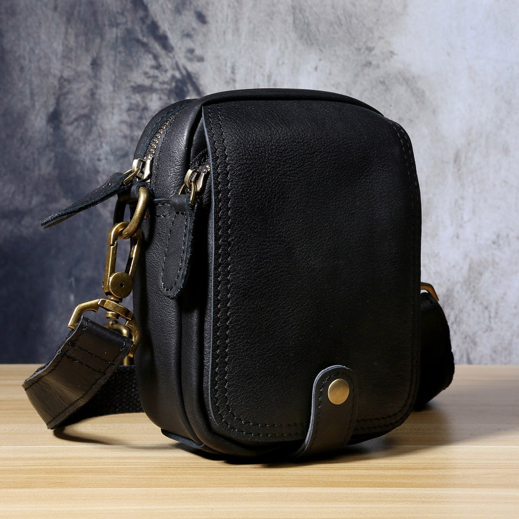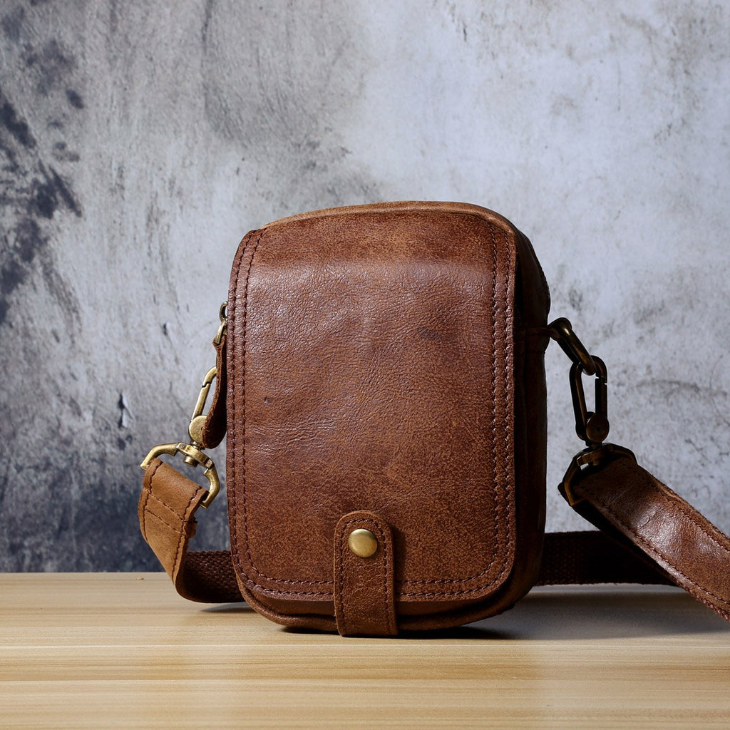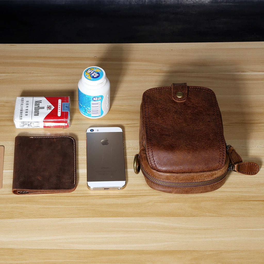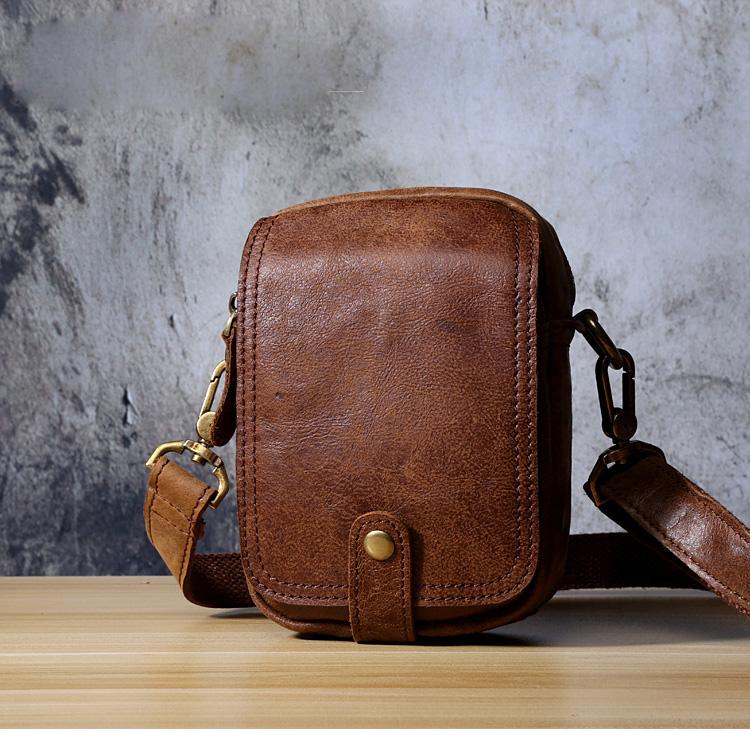 Design: Genuine Leather Mens Waist Bag Hip Pack Belt Bag Fanny Pack Bumbag for Men