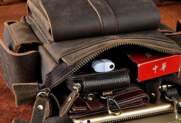 Design: Vintage Mens Leather Drop Leg Bag Messenger Bag Waist Bag Belt Pouches For MenOverview: