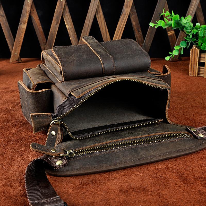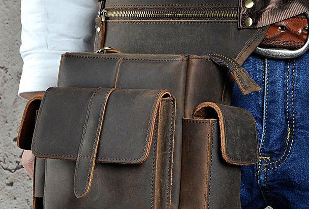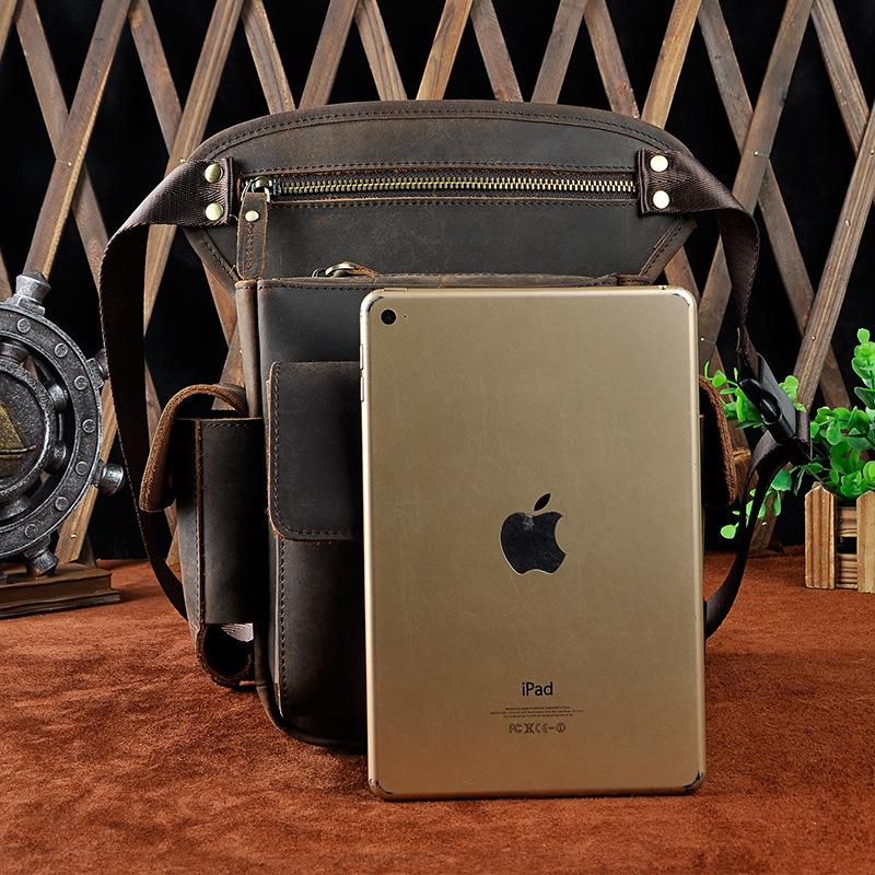 Design: Vintage Mens Leather Drop Leg Bag Messenger Bag Waist Bag Belt Pouches For Men