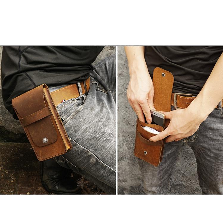 Style: Handmade Brown LEATHER MEN Belt Pouch Waist BAG Slim Belt Bag FOR MEN