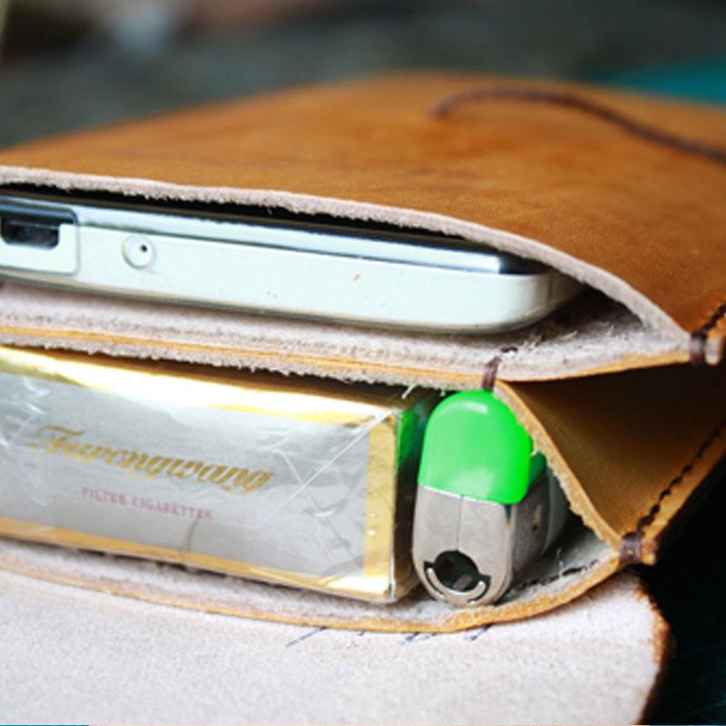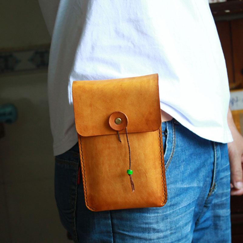 Design: Handmade Cool Leather Belt Pouch Mens Waist Bag Cell Phone Holsters for Men