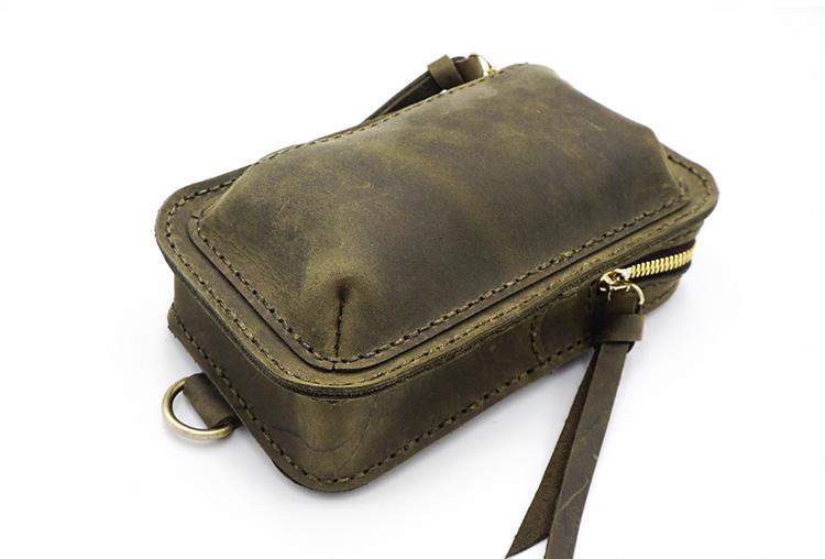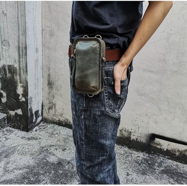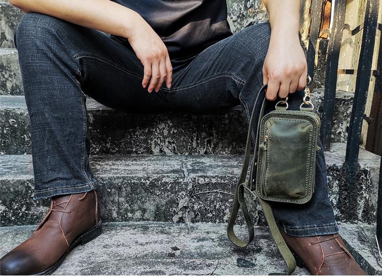 Style: Handmade Green LEATHER MEN Belt Pouch Waist BAG MIni Side Bag Belt Bag FOR MEN