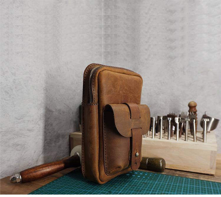 Style: Handmade LEATHER MEN Belt Pouch Brown Waist BAG MIni Side Bag Belt Bag FOR MEN